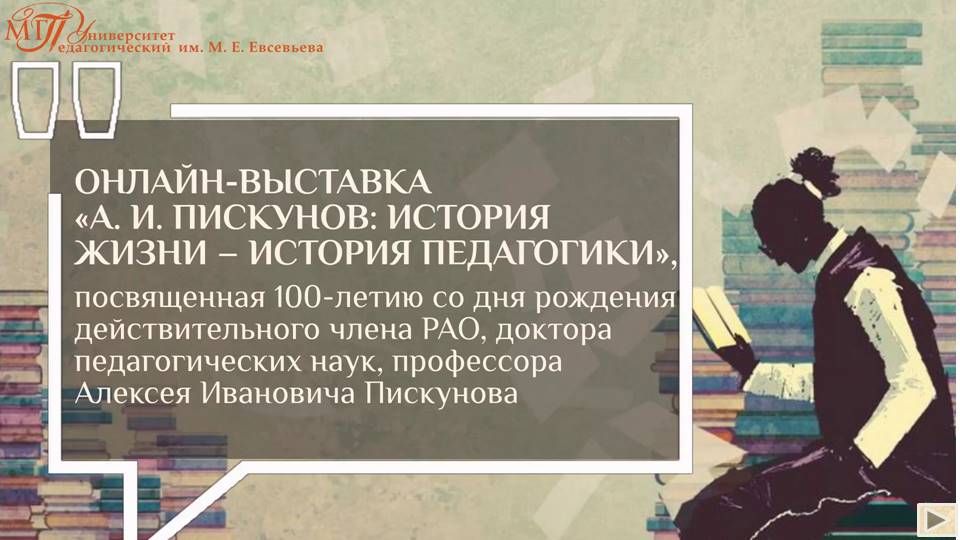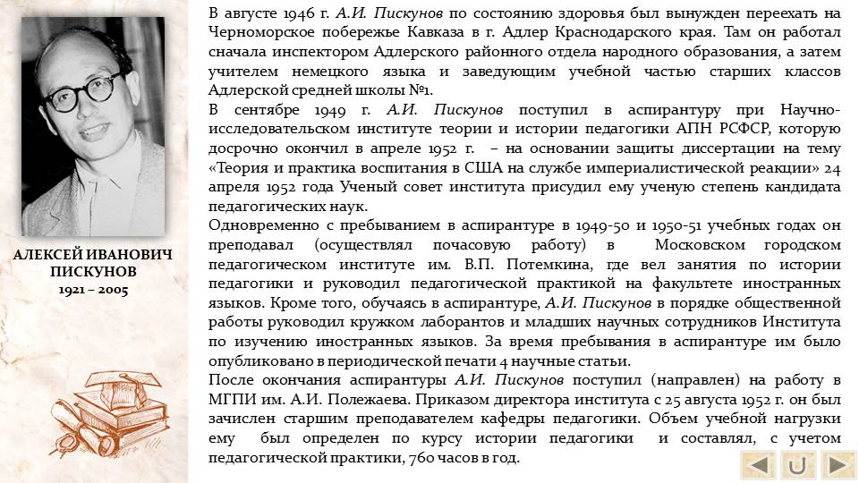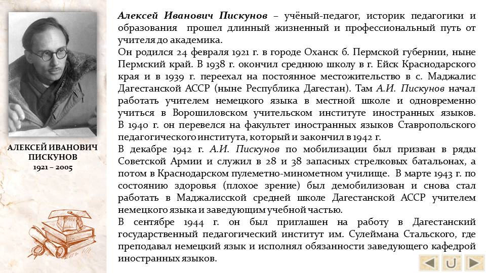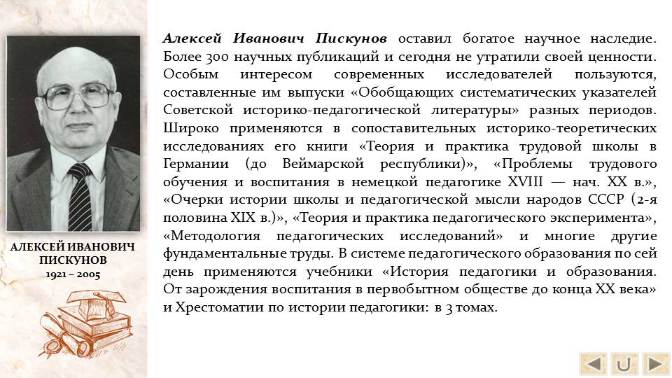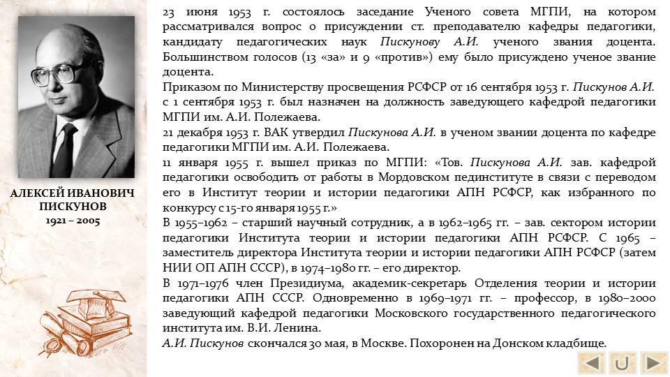 ОНЛАЙН-ВЫСТАВКА «А. И. ПИСКУНОВ: ИСТОРИЯ ЖИЗНИ – ИСТОРИЯ ПЕДАГОГИКИ», ПОСВЯЩЕННАЯ 100-ЛЕТИЮ СО ДНЯ РОЖДЕНИЯ ДЕЙСТВИТЕЛЬНОГО ЧЛЕНА РАО, ДОКТОРА ПЕДАГОГИЧЕСКИХ НАУК, ПРОФЕССОРА АЛЕКСЕЯ ИВАНОВИЧА ПИСКУНОВА