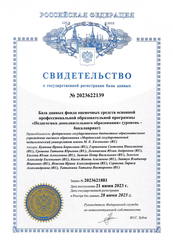 Патентообладатель: Федеральное государственное бюджетное образовательное учреждение высшего образования "Мордовский государственный педагогический институт имени М.Е. Евсевьева"