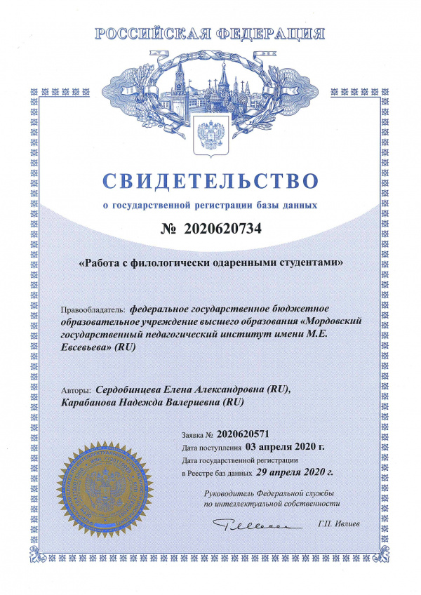 Патентообладатель: Федеральное государственное бюджетное образовательное учреждение высшего образования "Мордовский государственный педагогический институт имени М.Е. Евсевьева"
