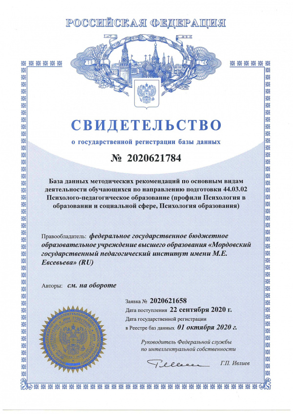 Патентообладатель: Федеральное государственное бюджетное образовательное учреждение высшего образования "Мордовский государственный педагогический институт имени М.Е. Евсевьева"