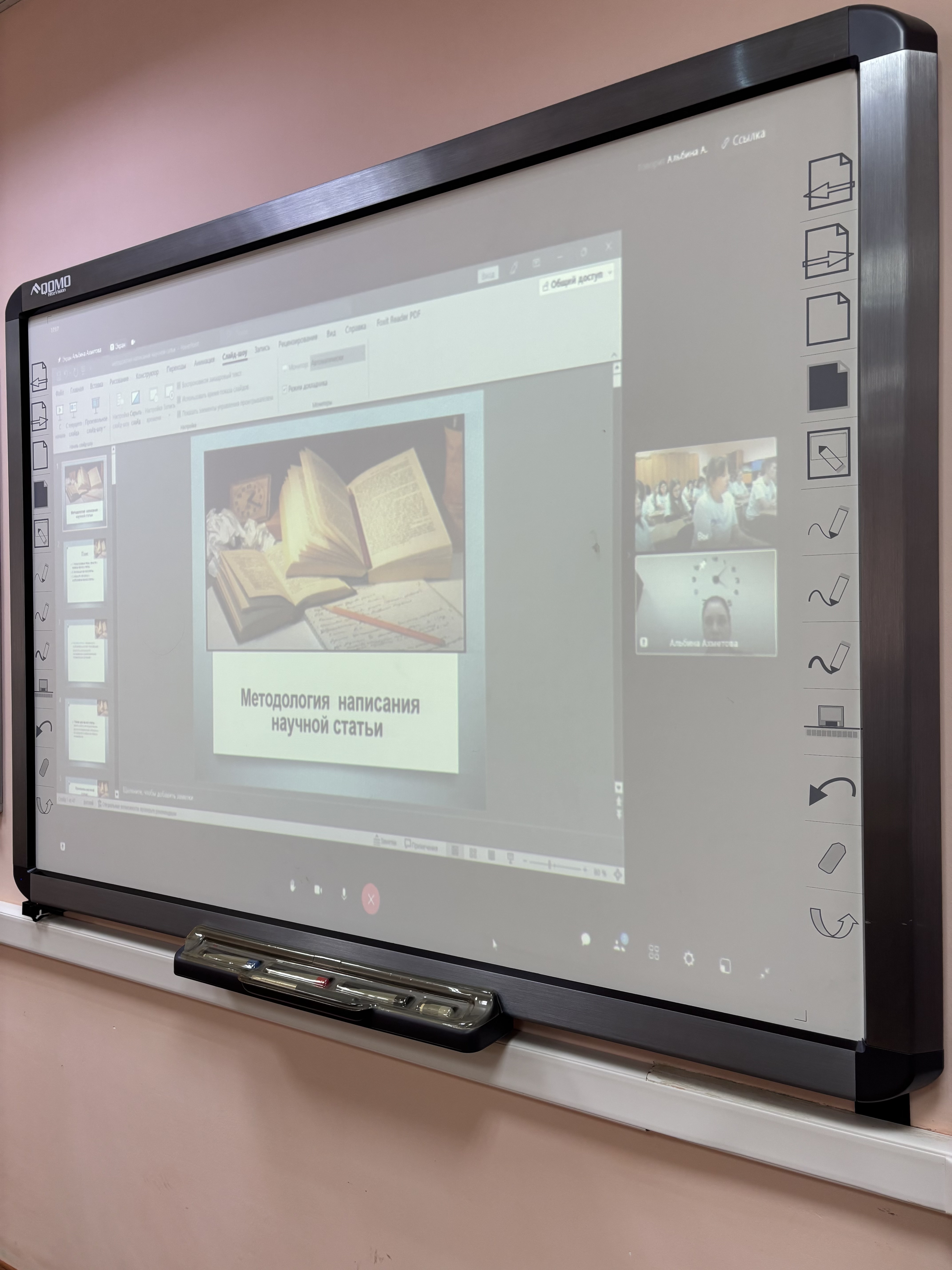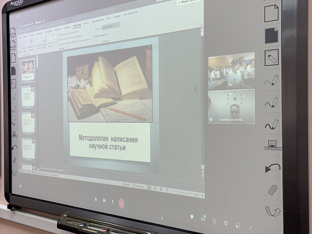 После организационной части было проведено непосредственное учебное занятие. Оно было посвящено видам научных работ и эффективному поиску информационных ресурсов. Студенты получили первые знания о необходимых составляющих научной статьи, ключевых правилах подбора литературы и современных инструментах, облегчающих исследовательскую деятельность.