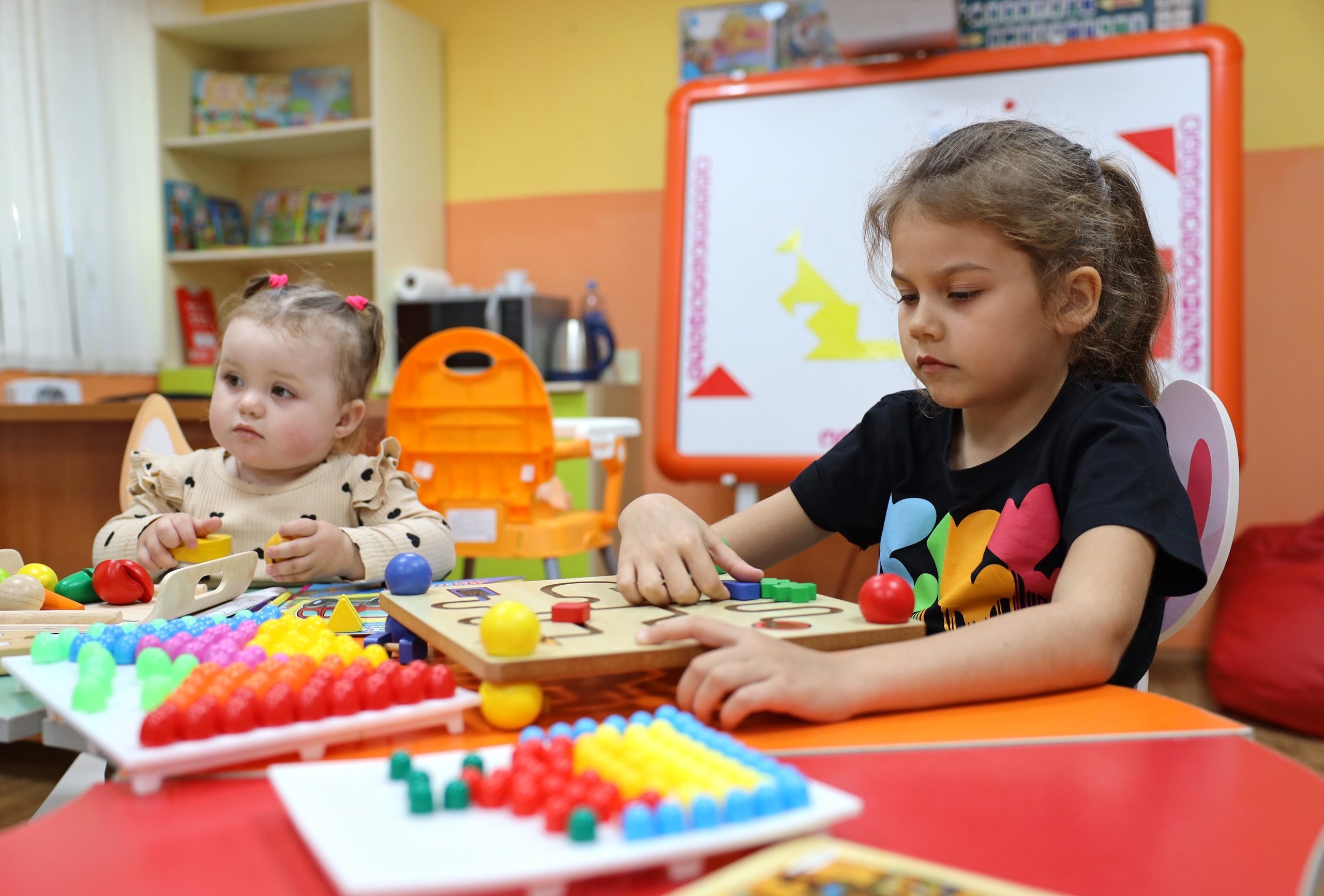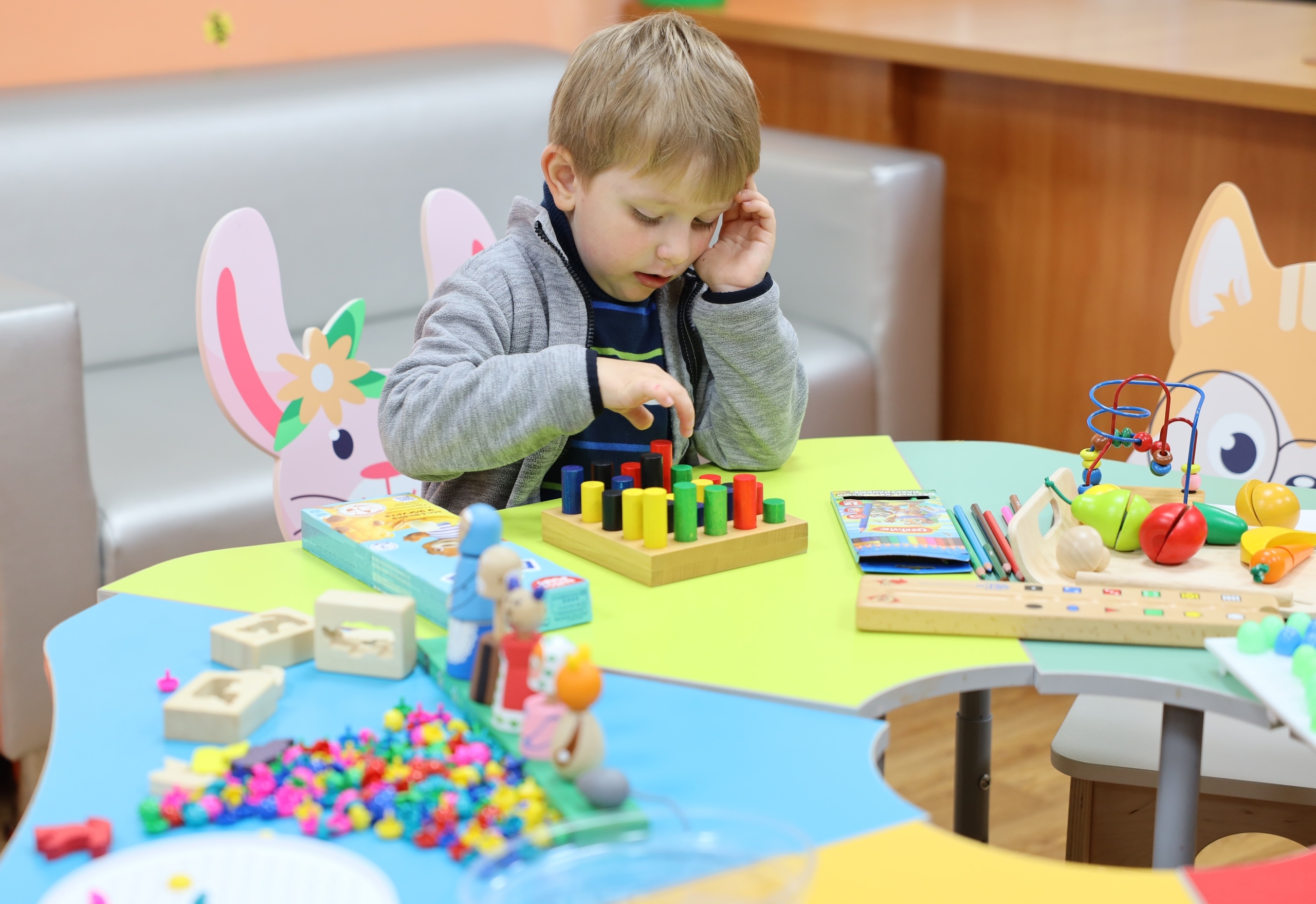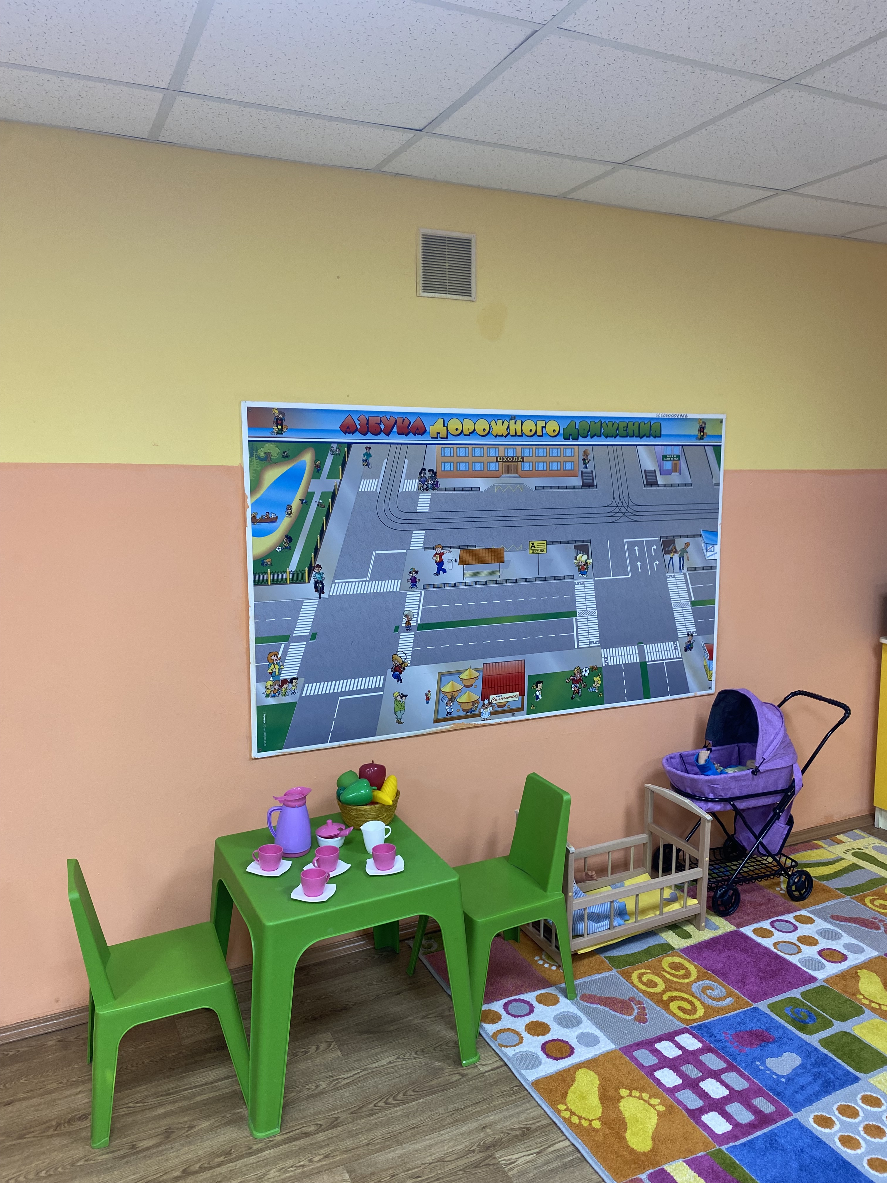 Помещение включает в себя уютные зоны для отдыха, необходимое оборудование для кормления и ухода за детьми. Комната также рассчитана на пребывание детей в возрасте от 1 года до 7 лет. Здесь есть вся необходимая мебель и оборудование, игрушки, материалы для творчества и развития, книги для детей от 1 года до 7 лет. Помощь родителям оказывают педагоги образовательного центра «Пеликан» и волонтёры факультета педагогического и художественного образования..