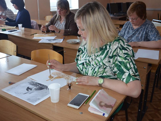Ежегодно кафедра художественного образования собирает учителей изобразительного искусства, начальных классов, педагогов дополнительного образования, воспитателей дошкольных организаций, которые в течение двух-трех часов осваивают приемы работы различными художественными материалами, не требующими специальных сложных инструментов, доступными детям младшего возраста.