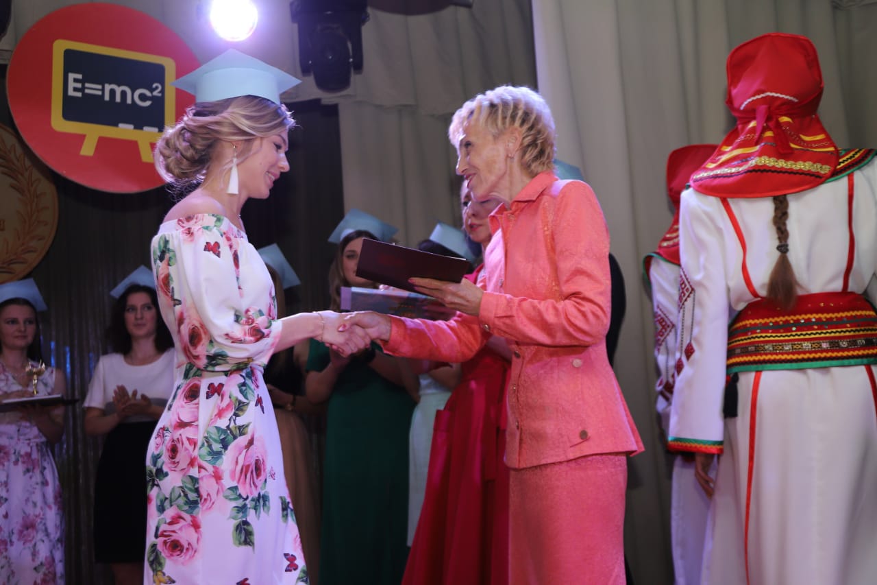 Кроме дипломов с отличием каждому выпускнику были вручены книги М. В. Антоновой «Путешествуем по Мордовии», статуэтки «Ника» и благодарственные письма родителям.