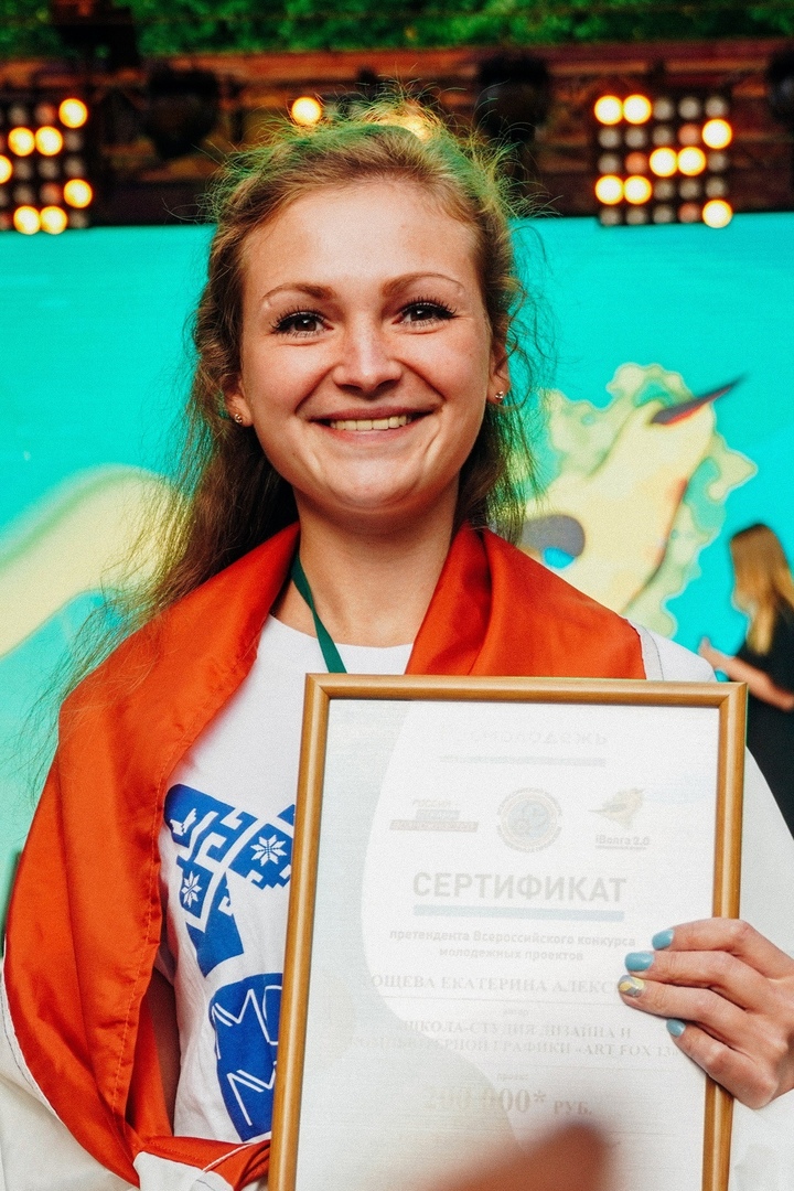 Проект Екатерины Тощевой стал победителем в грантовом конкурсе от Федерального агентства по делам молодежи и получил поддержку в размере 200 тысяч рублей. Идея проекта – создание на базе Мордовского педагогического института школы-студии дизайна и компьютерной графики «ART Fox13». Екатерина отмечает: «проект направлен на решение проблемы раннего эстетического воспитания детей, ранней профориентации в творческие профессии, а для учеников старших классов – возможности создать творческое портфолио для поступления в ВУЗ по направлениям дизайна».