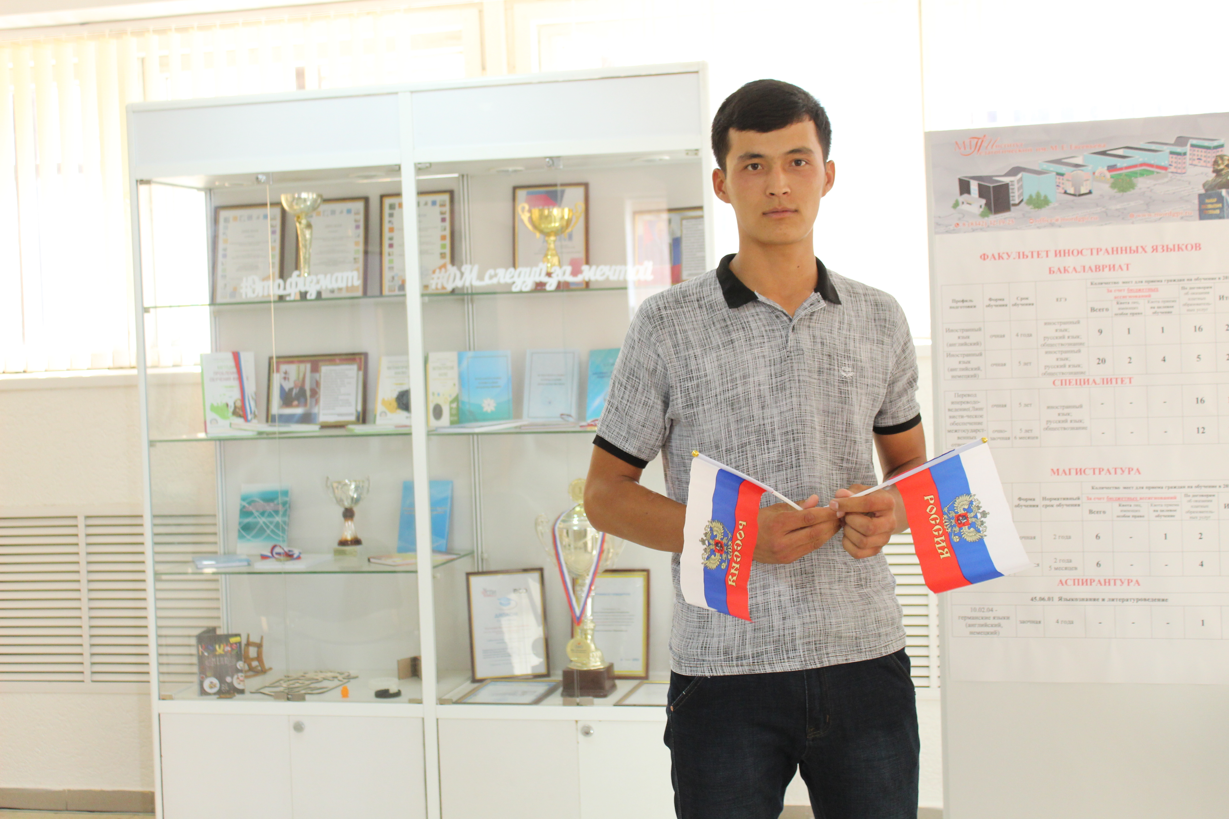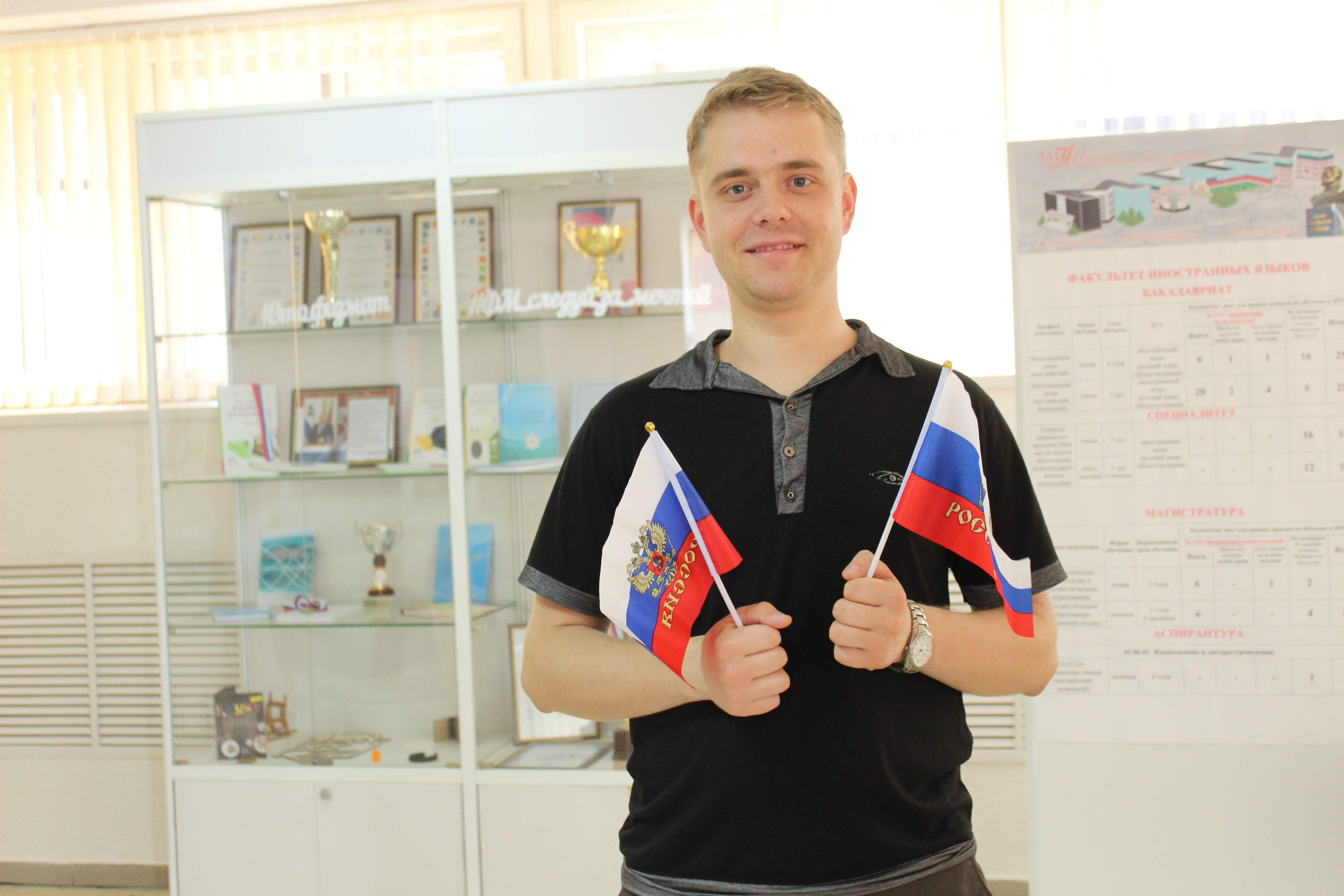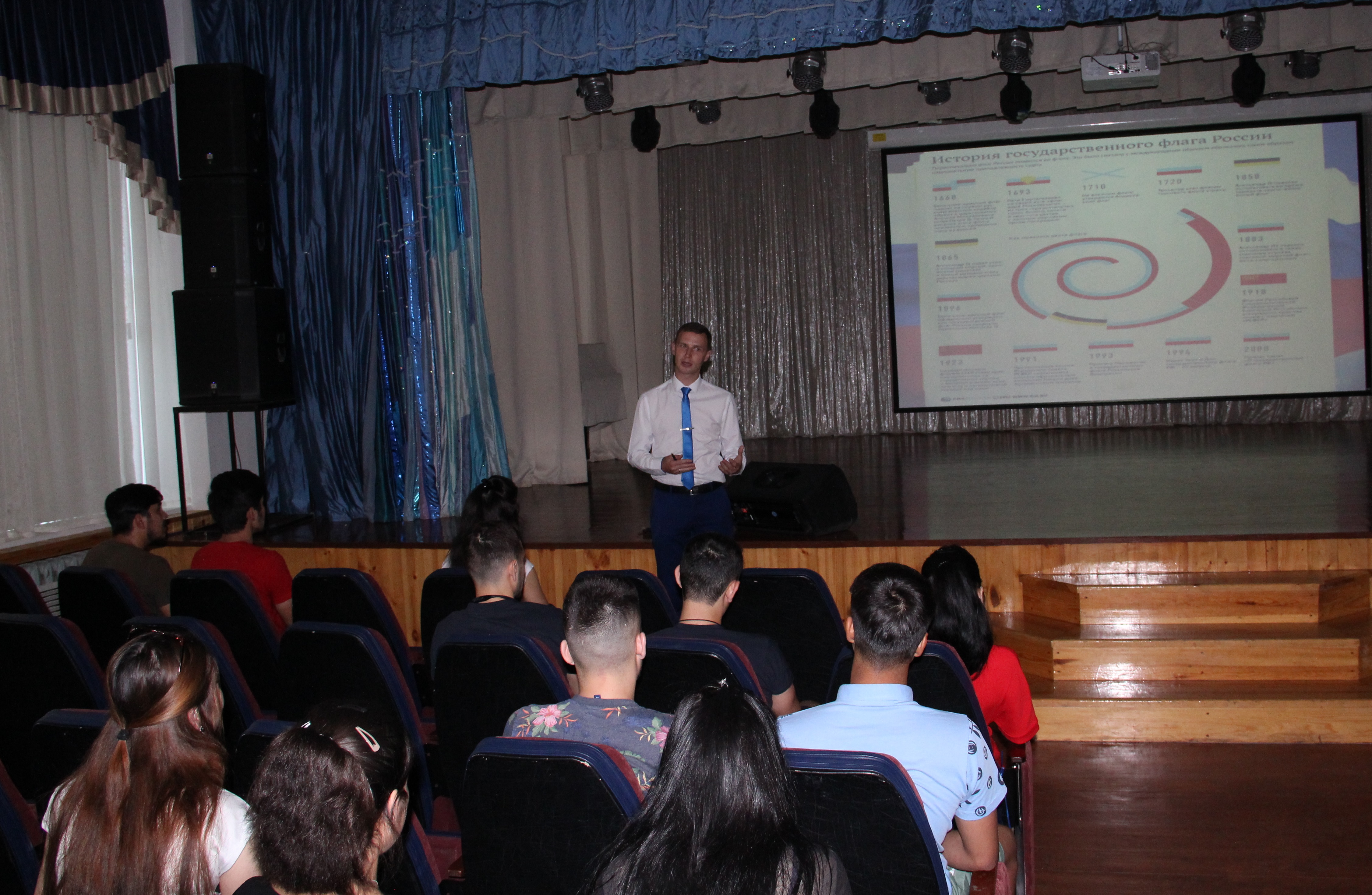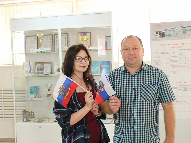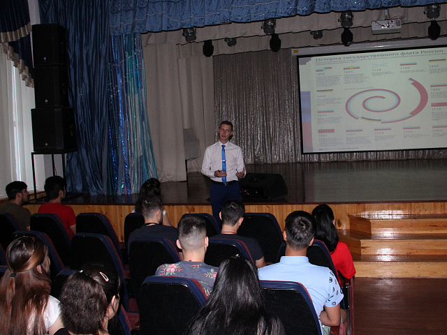 Управлением воспитательной и социокультурной деятельности проведен кинолекторий «Флаг России – гордость наша!», в ходе которого студентам рассказали об истории возникновения и утверждения флага как одного из символов государства. Сотрудники библиотеки подготовили выставку «Государственный флаг – символ России» и провели игру-викторину «Святыня Российской державы», в которую вовлекли и иностранных студентов, для того чтобы они приобщились к историческим ценностям Российского государства. Студенческим профсоюзом во главе с его лидером Сергеем Александровичем Пыковым организован флэш-моб «Российский триколор – звучит гордо!».