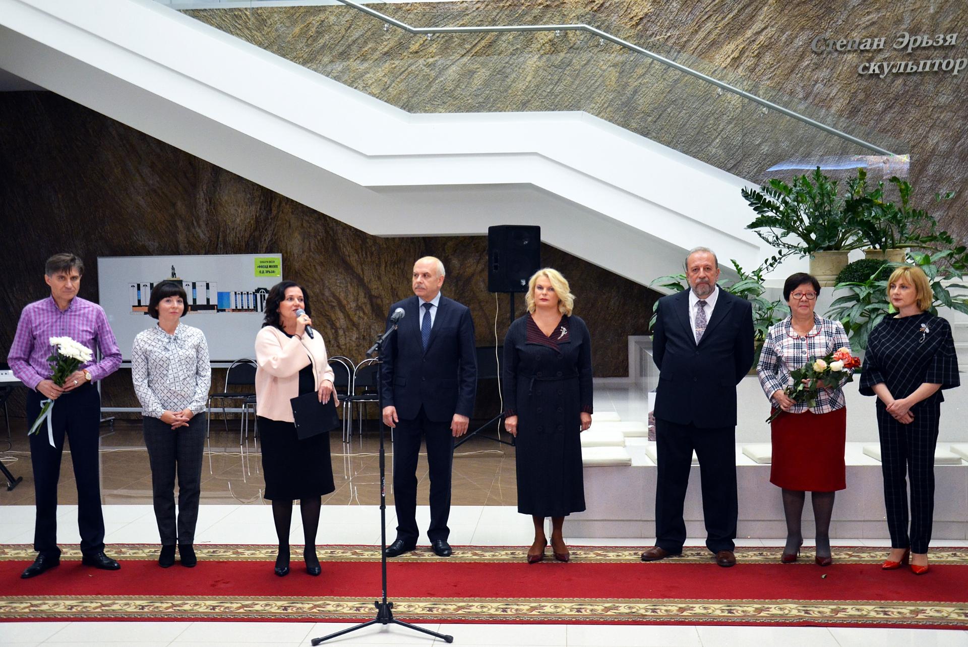 С приветствием к гостям обратились директор музея, Председатель Союза художников Мордовии Л. Н. Нарбекова; заместитель министра культуры, национальной политики и архивного дела Н. В. Бычков; ректор МГПИ имени М. Е. Евсевьева М. В. Антонова; декан факультета педагогического и художественного образования Т. Н. Приходченко; заведующий кафедрой художественного образования В. А. Варданян; искусствовед, доктор культурологии, член Союза художников России О. Г. Беломоева; директор Саранского художественного училища имени Ф. В. Сычкова Ю. А. Дырин; заместитель директора по воспитательной работе Ичалковского педагогического колледжа Т. П. Марушева. Они поздравили юбиляров и пожелали им больших творческих успехов в педагогической и художественной деятельности. Куратор выставки И. В. Шило познакомила собравшихся с экспозицией выставки и представила её авторов.