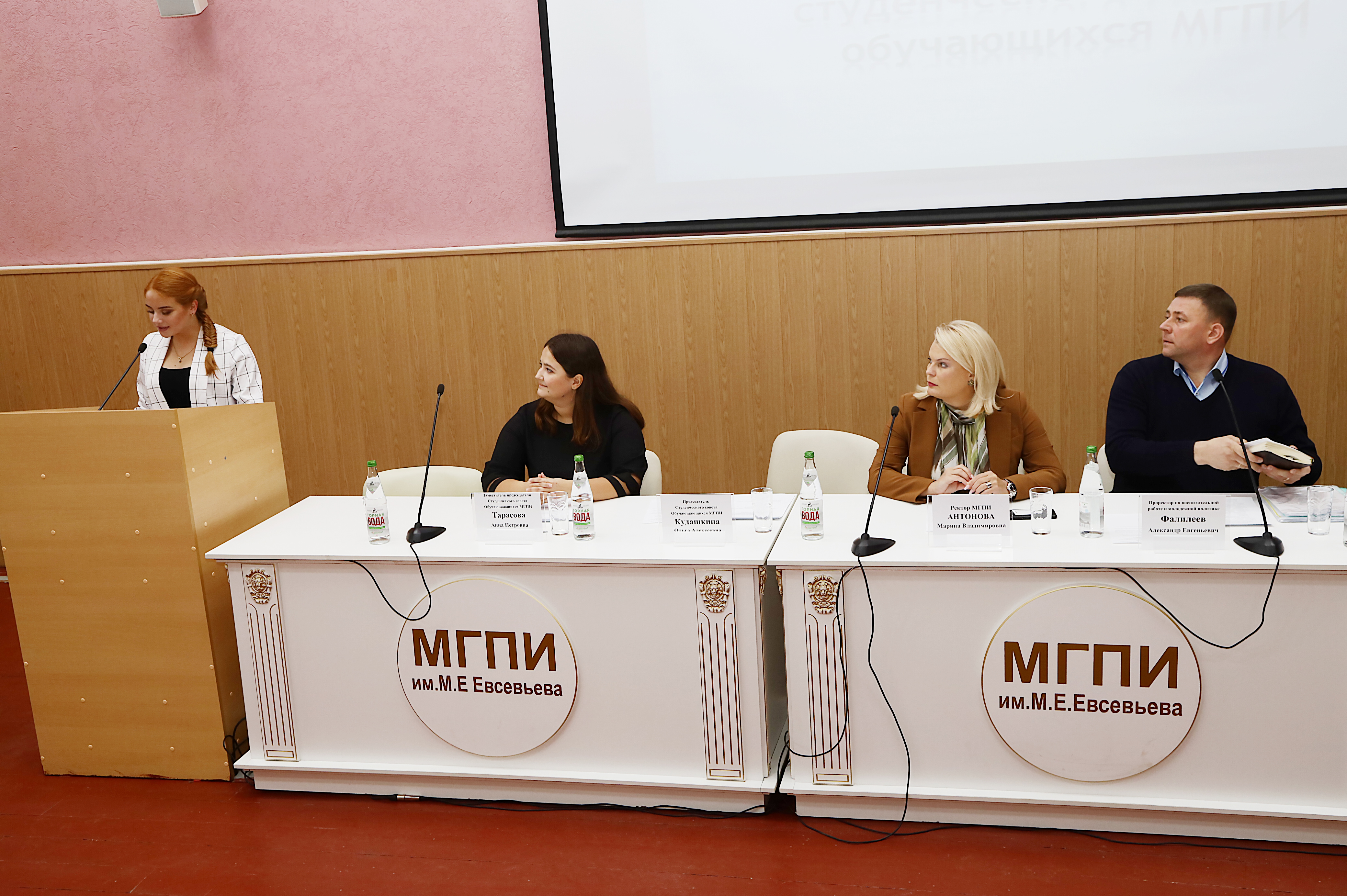 22 октября 2019 года состоялась отчетно-выборная конференция Студенческого совета обучающихся Мордовского государственного педагогического института имени М. Е. Евсевьева. На конференции присутствовали Антонова Марина Владимировна, ректор Мордовского государственного педагогического института имени М. Е. Евсевьева; Фалилеев Александр Евгеньевич, проректор по воспитательной работе и молодежной политике; Дементьева Елена Викторовна, начальник управления воспитательной и социокультурной деятельности; Пыков Сергей Александрович, председатель первичной профсоюзной организации студентов и аспирантов МГПИ, Кудашкина Ольга Алексеевна, председатель Студенческого совета обучающихся МГПИ. Участниками конференции стали 132 делегата из числа старостата и студенческого актива факультетов.
