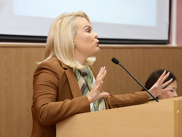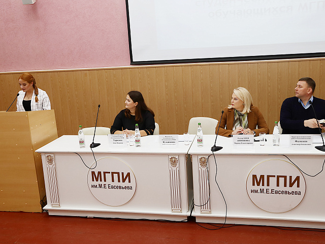 С итогами деятельности Студенческого научного общества за отчетный период и планом работы на 2019–2020 учебный год выступила Демяшкина Юлия Андреевна, председатель Студенческого научного общества института. Демяшкина Ю. А. в своем докладе подчеркнула важность развития студенческой науки в образовательном пространстве МГПИ, необходимость участия студентов в научно-проектной деятельности, молодежных форумных кампаниях, научно-практических конференциях разных уровней.