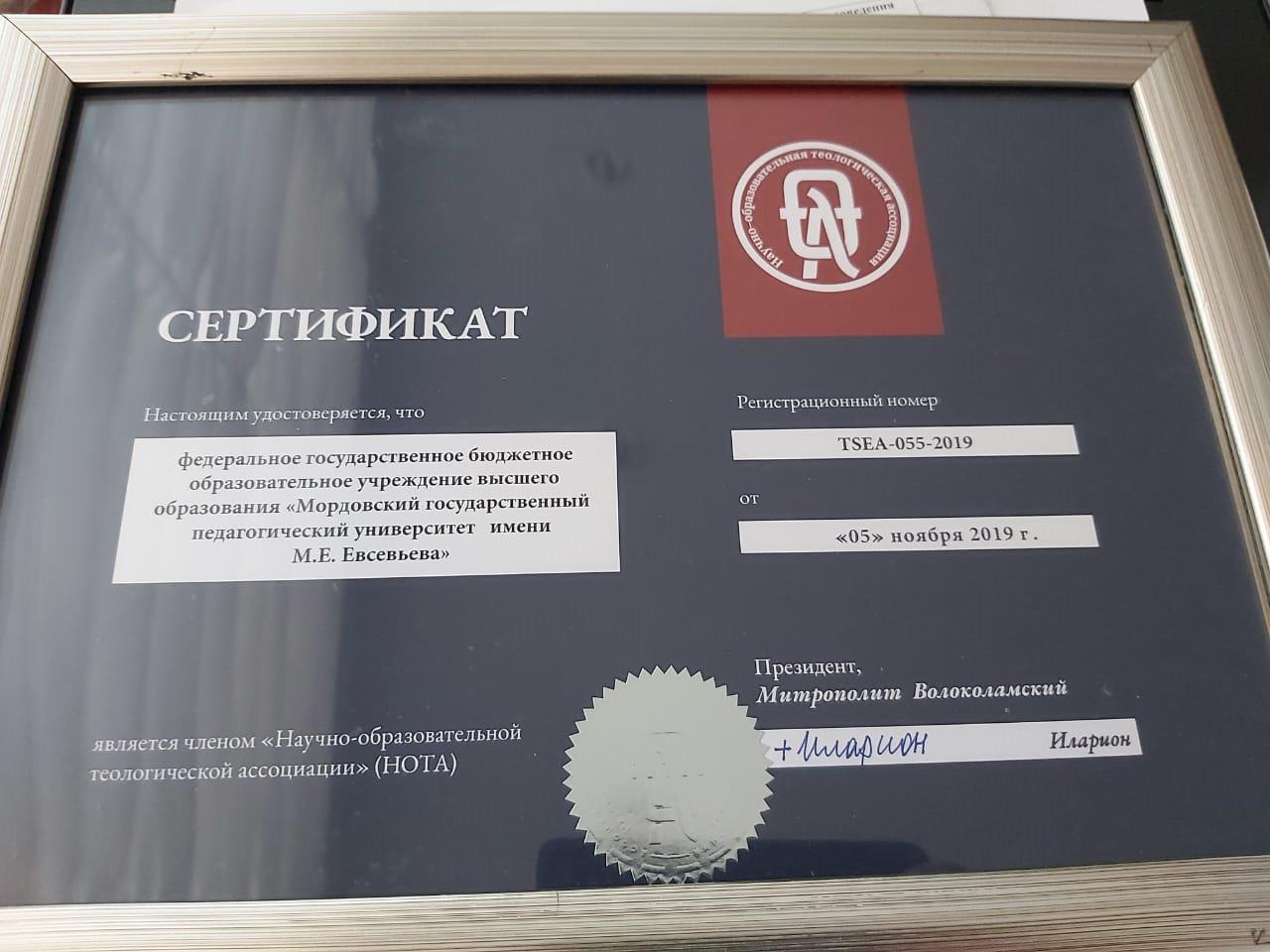 На конференции присутствовал проректор по воспитательной работе и молодежной политике Мордовского государственного педагогического института имени М. Е. Евсевьева А. Е. Фалилеев. Митрополит Волоколамский Иларион вручил Александру Евгеньевичу сертификат, подтверждающий, что МГПИ им. М. Е. Евсевьева является членом «Научно-образовательной теологической ассоциации» (НОТА).