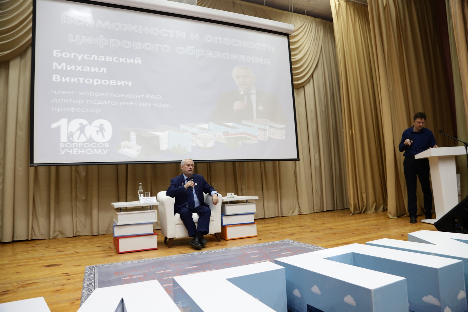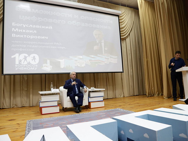 7 ноября в киноконцертном зале МГПИ им. М.Е. Евсевьева прошло традиционное ток-шоу «100 вопросов ученому» на актуальную тему «Возможности и опасности цифрового образования». Гостем и экспертом стал член-корреспондент Российской академии образования, доктор педагогических наук, профессор Михаил Викторович Богуславский. Гости ток-шоу приняли участие в большом онлайн-опросе по проблемам цифровизации образования, а затем активно задавали вопросы Михаилу Викторовичу. Кстати, вопросы можно было адресовать ученому и посредством соцсетей и мессенджеров. Дискуссия получилась очень интересной и живой.