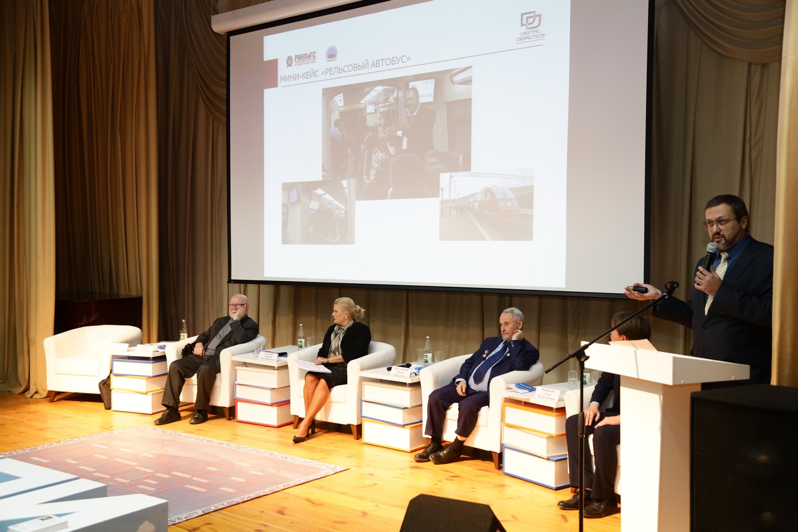 По вопросу цифровой трансформации образования высказал свою позицию Игорь Станиславович Сергеев, доктор педагогических наук, ведущий научный сотрудник Центра профессионального образования и систем квалификаций ФИРО РАНХиГС. В своем выступлении он раскрыл особенности цифровых технологий Ed-tech в педагогической практике, AR/VR-технологий, интернета вещей. Также были рассмотрены вопросы цифровизации профессионального образования и дополнительного профессионального образования, роль адаптивных систем обучения, которые помогают настроить на интеллектуальные учебные стратегии с помощью способов диагностики, накопления больших данных, обработки цифрового следа.