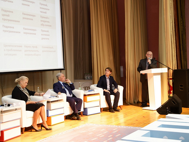 Со словами благодарности к организаторам и участникам конференции обратился доктор филологических наук, главный научный сотрудник кафедры лингвистики и перевода факультета иностранных языков ФГБОУ ВО «Мордовский государственный педагогический институт имени М. Е. Евсевьева» Олег Ефимович Осовский, сын Е. Г. Осовского. Он подчеркнул, что данная конференция собрала педагогов разных поколений и является значимой площадкой для дискуссий на тему развития педагогического образования.