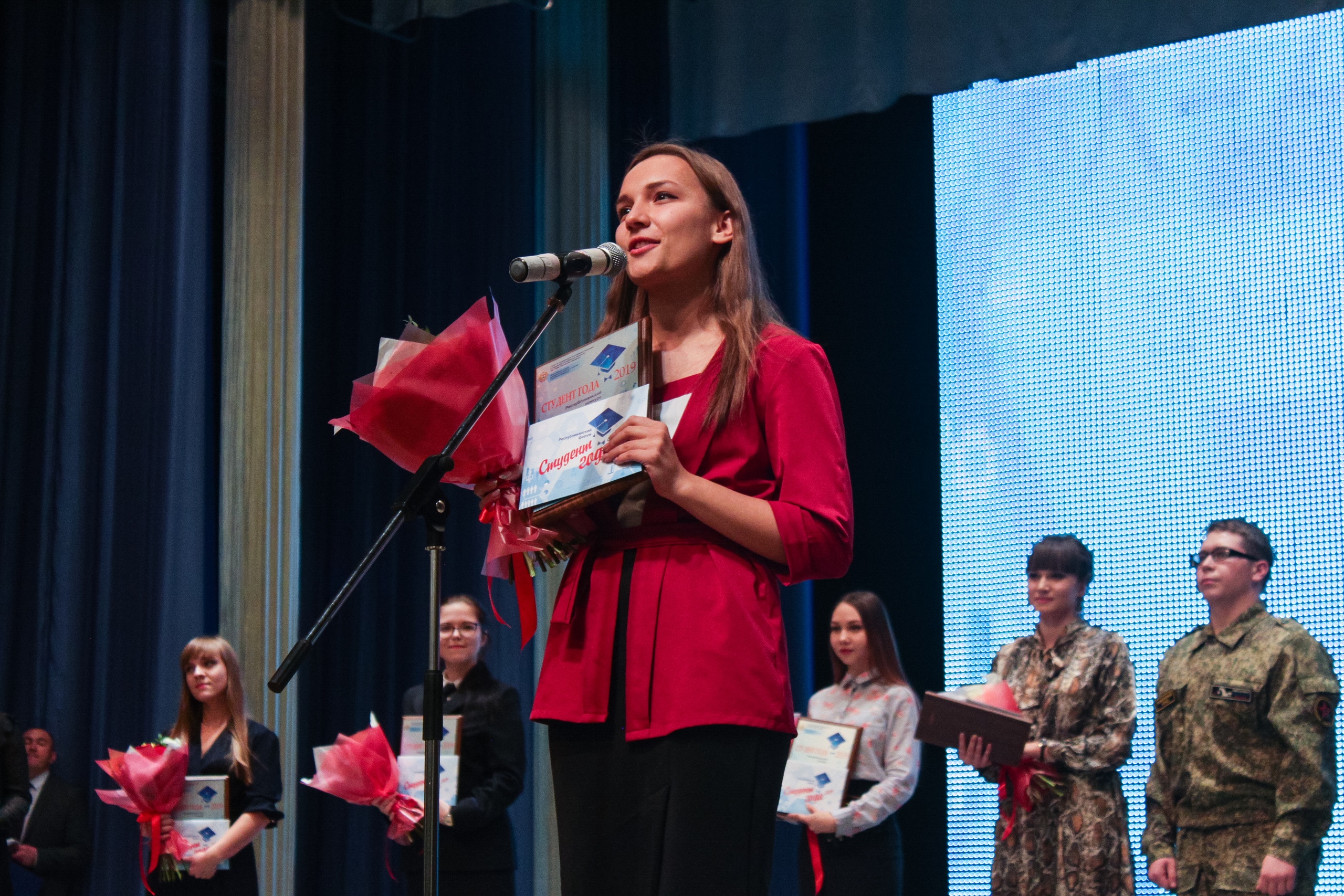 Мордовский государственный педагогический институт имени М. Е. Евсевьева стал победителем в следующих номинациях: «Спортсмен года» – КАЛТЫШКИН Николай Александрович, студент 3 курса факультета физической культуры; ТУНДЫКОВ Данила Александрович, студент 3 курса факультета среднего профессионального образования; «Иностранный студент года» – ХУДАЙБЕРЕНОВА Огулсурай, студентка 4 курса факультета педагогического и художественного образования; «Общественник года» – ЗАВАЛИХИНА Ярослава Аркадьевна, студентка 4 курса факультета психологии и дефектологии. Со словами приветствия от студенческого коллектива Мордовского государственного педагогического института имени М. Е. Евсевьева выступила Завалихина Ярослава, победитель в номинации «Общественник года»: «Я рада, что победила именно в этой номинации. Понятие «общественная деятельность» включает много направлений, но в настоящее время активно развивается добровольческая деятельность. Я на протяжении шести лет занимаюсь добровольчеством, и с каждым днем все больше убеждаюсь, что выбрала правильный путь! Желаю всем студентам реализации самых смелых планов, успехов в учёбе, неисчерпаемой энергии и веры в свои силы! Пусть студенческие будни будут богаты открытиями и останутся в памяти одним из самых счастливых периодов жизни! Учитесь, мечтайте, творите!».