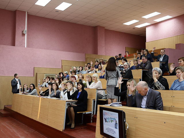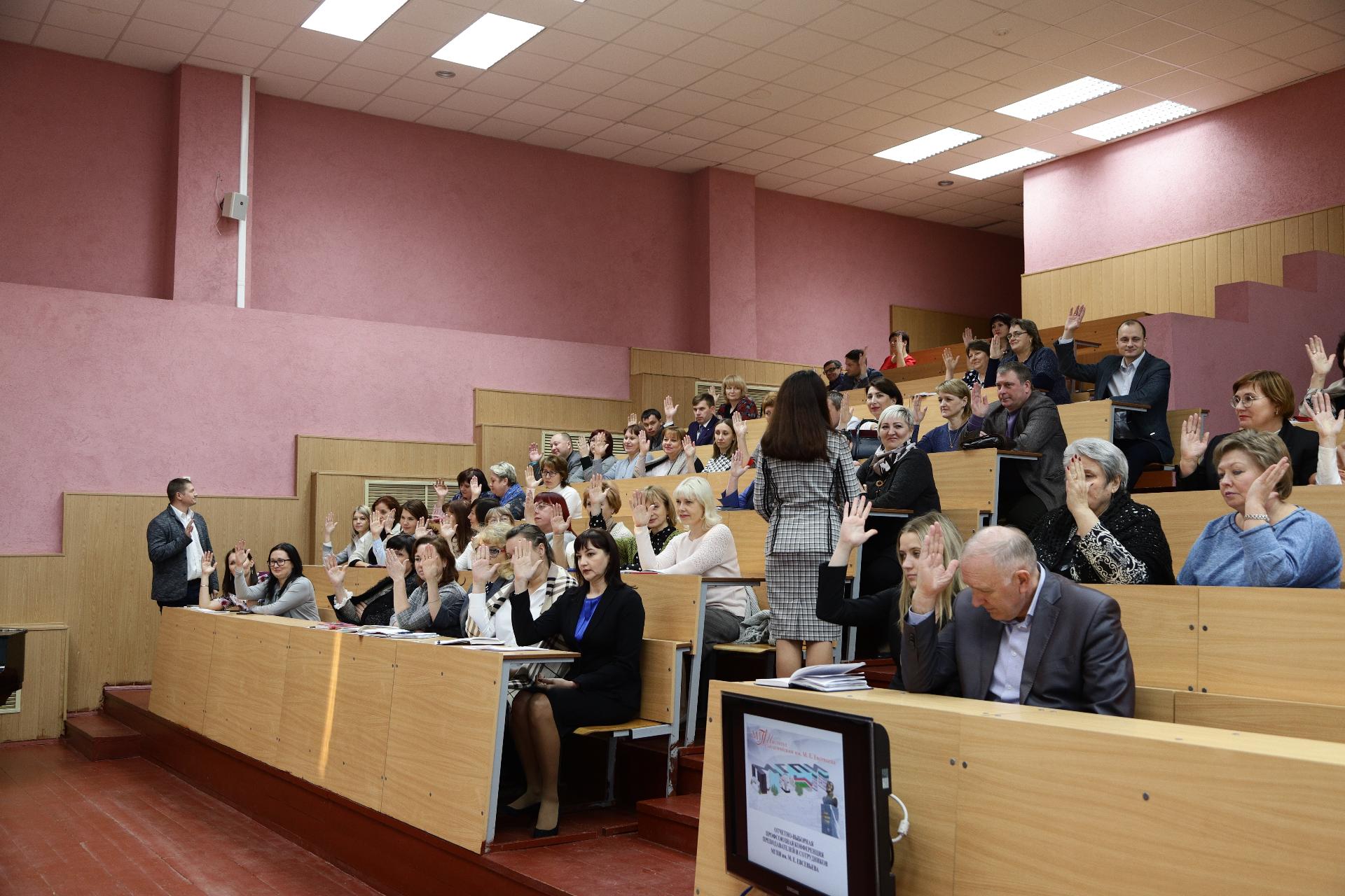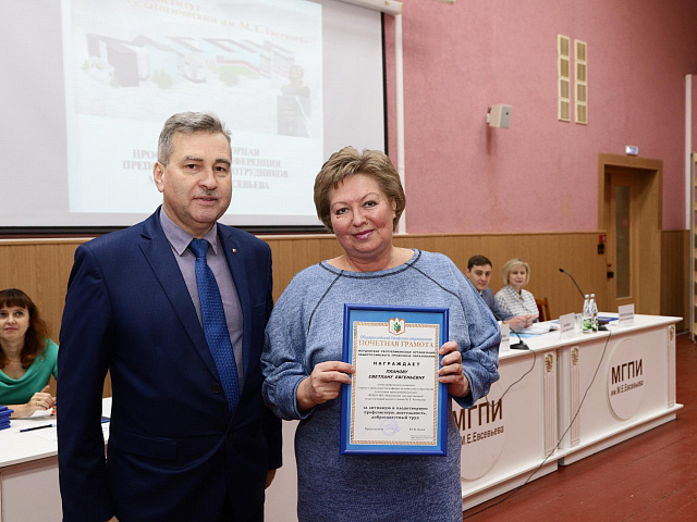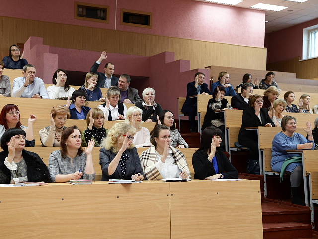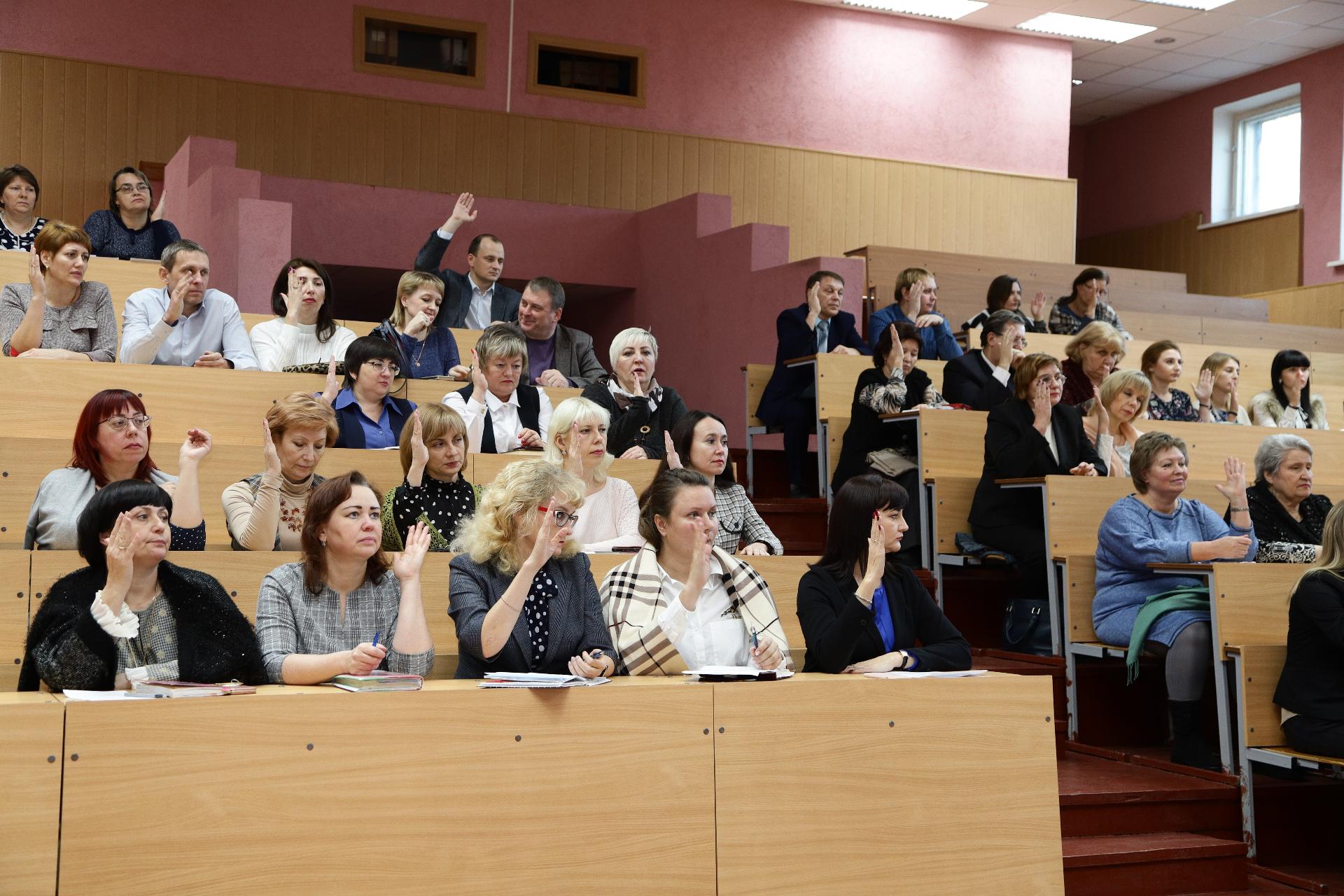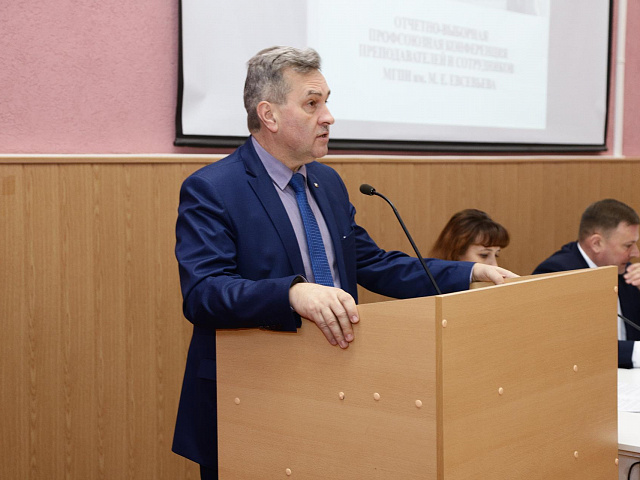 22 ноября 2019 года в Мордовском государственном педагогическом институте имени М. Е. Евсевьева состоялась отчетно-выборная профсоюзная конференция преподавателей и сотрудников. В состав президиума вошли: Базов Юрий Васильевич, председатель Мордовской республиканской организации Общероссийского Профсоюза образования; Мумряева Светлана Михайловна, проректор по учебной работе; Фалилеев Александр Евгеньевич, председатель первичной профсоюзной организации преподавателей и сотрудников МГПИ; Белоглазова Елена Владимировна, директор библиотеки; Базеев Олег Викторович, начальник редакционно-издательского центра.