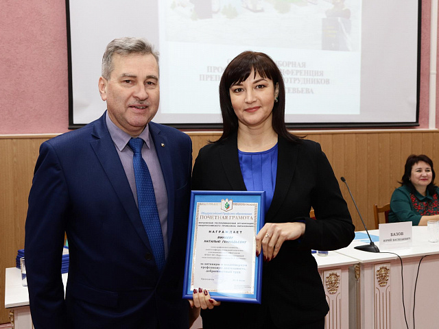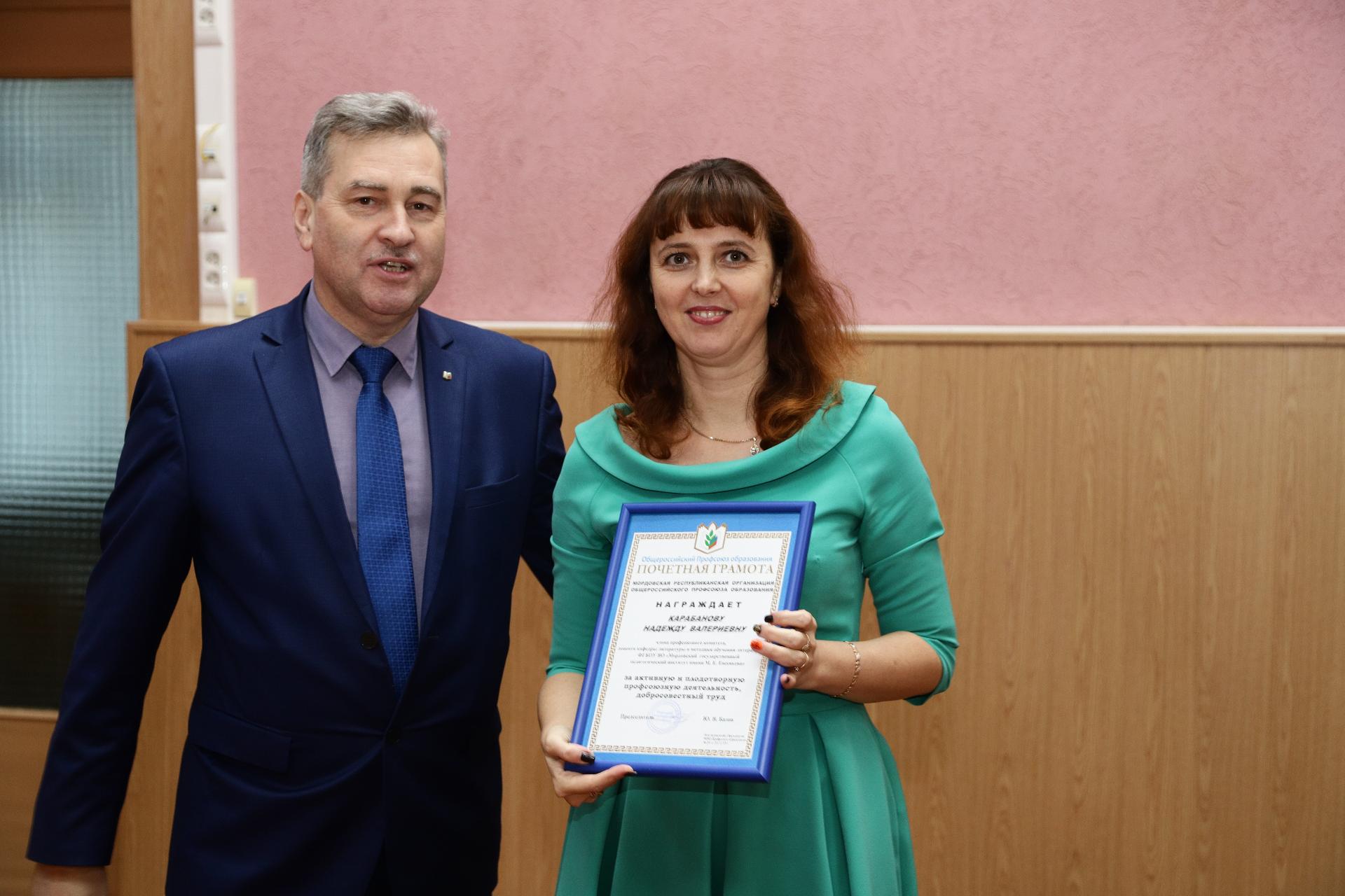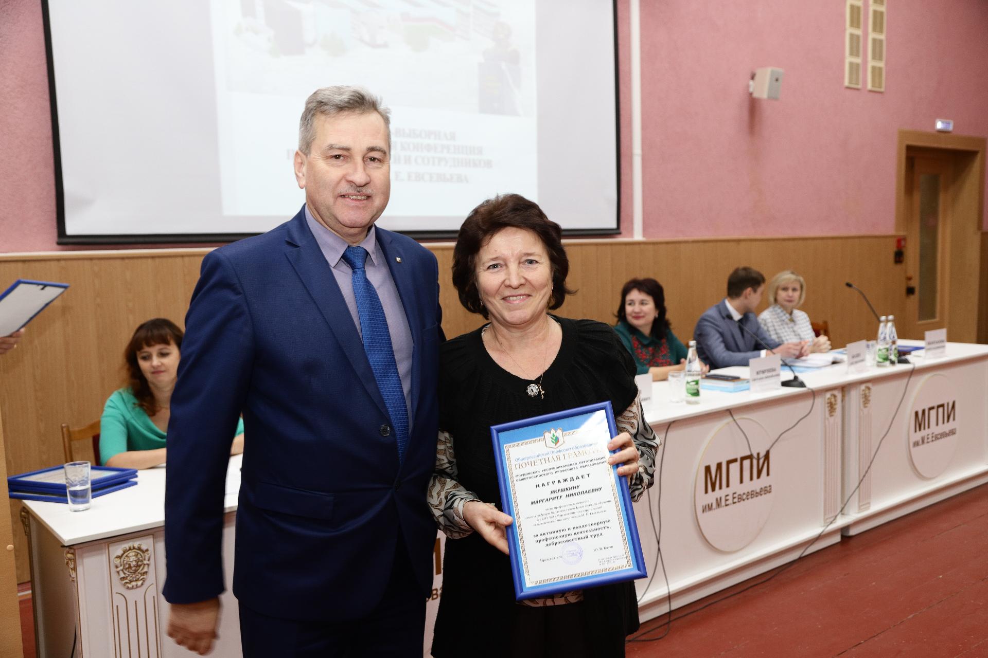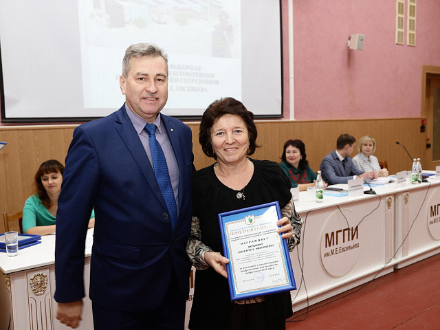 С приветственным словом к участникам конференции обратился Базов Юрий Васильевич, председатель Мордовской республиканской организации Общероссийского Профсоюза образования, который отметил большую роль профсоюзного комитета Мордовского государственного педагогического института имени М. Е. Евсевьева в развитии профсоюзного движения Республики Мордовия, поблагодарил за активную результативную работу действующего председателя первичной профсоюзной организации преподавателей и сотрудников Фалилеева Александра Евгеньевича и вручил Почетные грамоты Мордовской республиканской организации Общероссийского Профсоюза образования членам профсоюзного комитета, которые вели плодотворную профсоюзную деятельность.