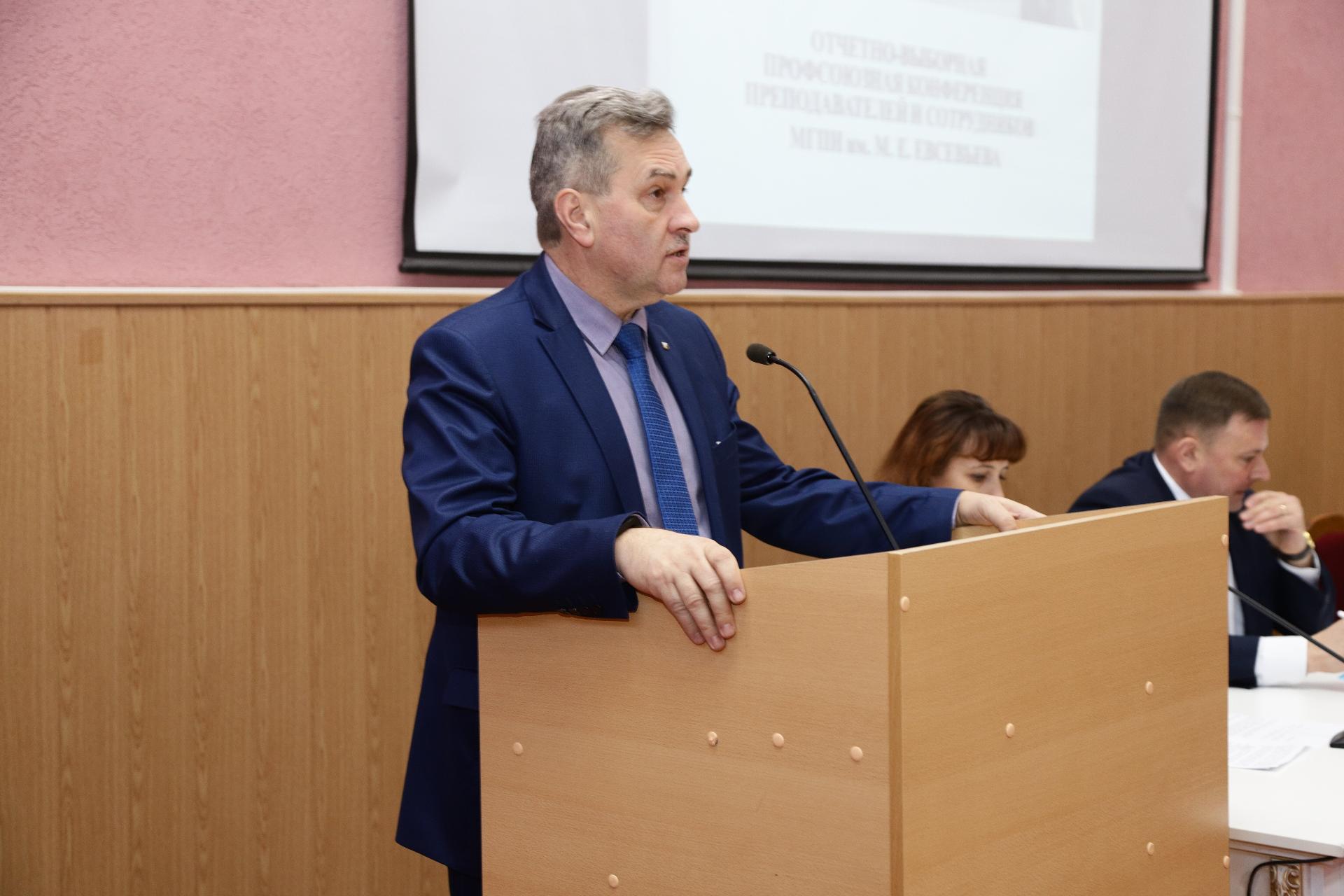 С докладом «Отчет о работе профсоюзного комитета за период с 5 декабря 2014 года по 22 ноября 2019 года» выступил действующий председатель профсоюзного комитета Фалилеев Александр Евгеньевич. В своем докладе Александр Евгеньевич обозначил цели, задачи и основные направления работы профсоюзного комитета, его ведущую роль в защите прав преподавателей и сотрудников института, отразил процент оказания материальной помощи членам профсоюзного комитета, дал характеристику целевым расходам на развитие спортивной, оздоровительной и культурной деятельности, рассказал о содействии профсоюзного комитета в работе Совета ветеранов МГПИ, поблагодарил членов профсоюзного комитета за добросовестный труд. Кроме того, Александр Евгеньевич отметил огромную поддержку руководства института в лице ректора Марины Владимировны Антоновой в организации профсоюзной деятельности МГПИ.