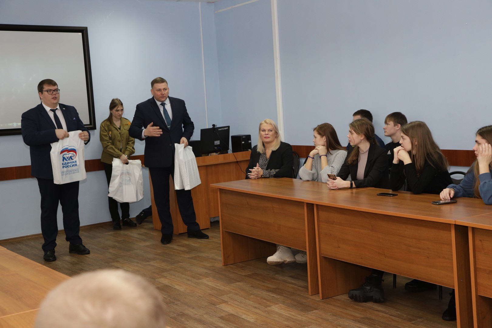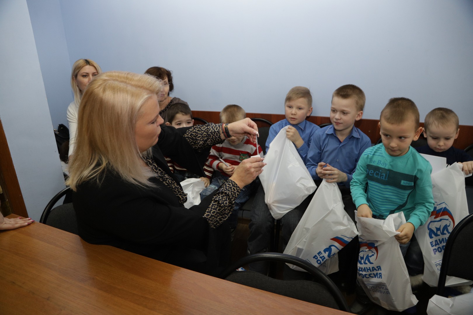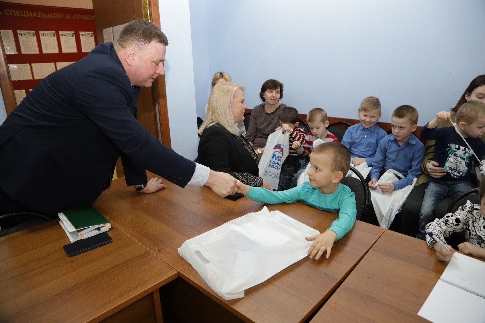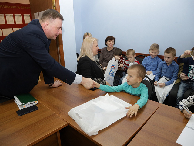 С приветственным словом выступил первый заместитель руководителя Регионального исполнительного комитета партии «Единая Россия» Миронов Евгений Сергеевич, вручив подарки от регионального отделения партии «Единая Россия».