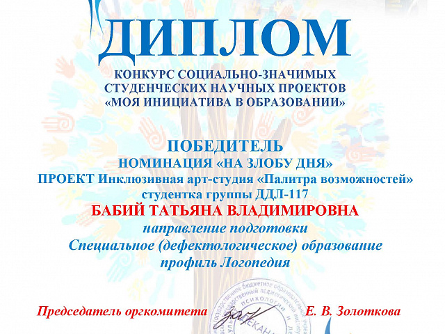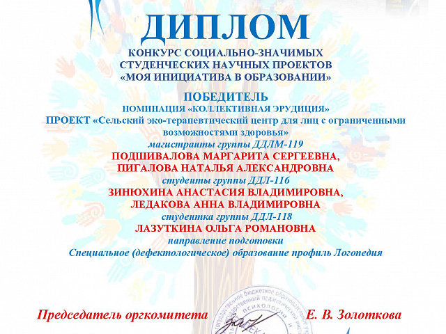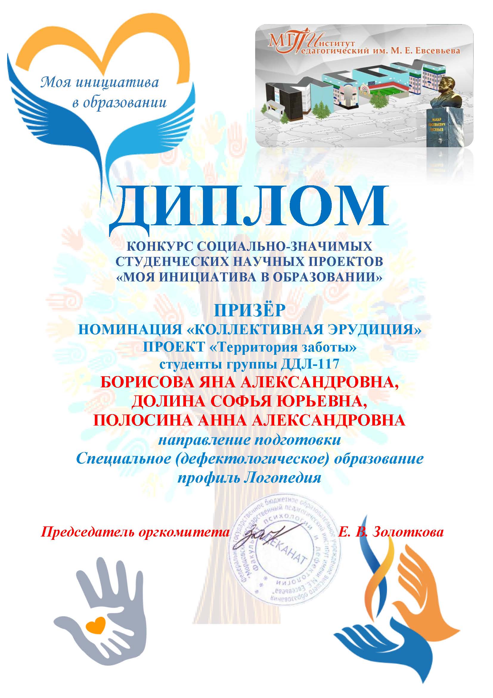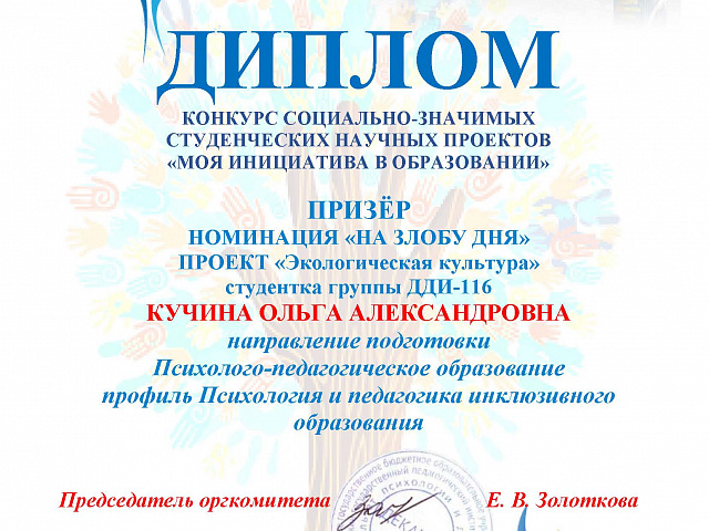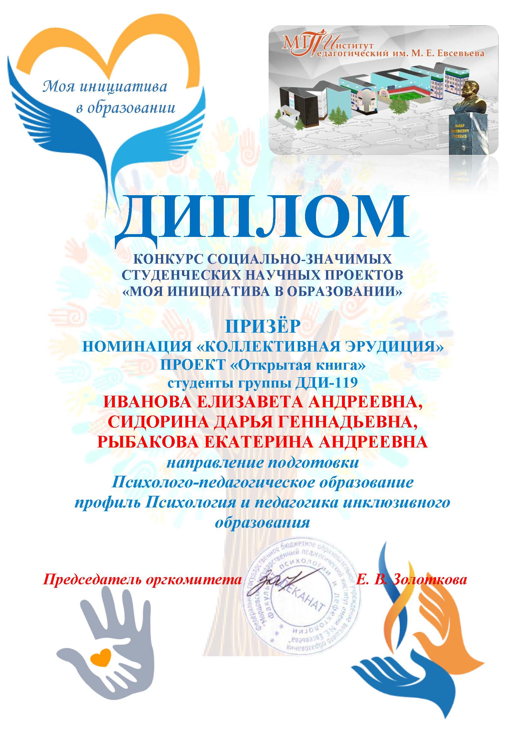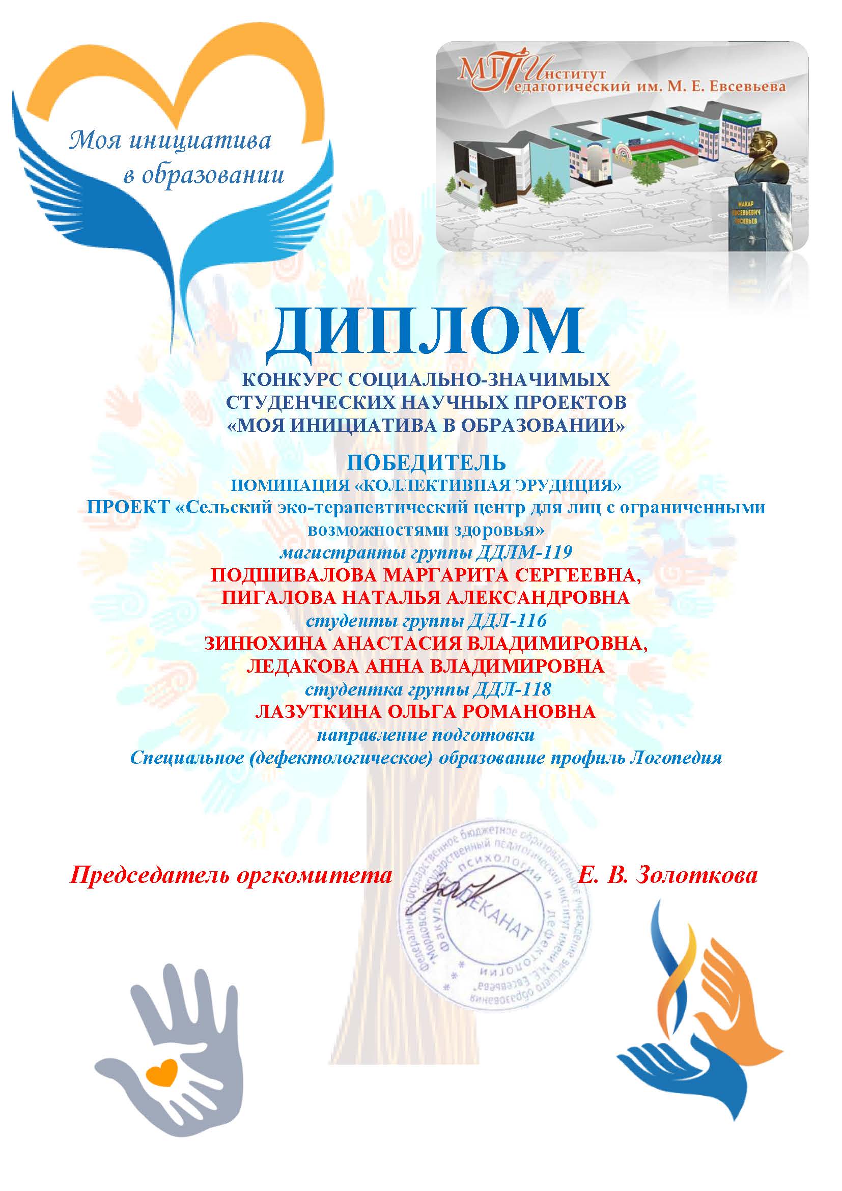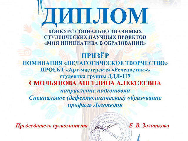 С 06.04.2020 по 21.04.2020 года в Мордовском государственном педагогическом институте имени М. Е. Евсевьева в дистанционном формате проходил конкурс социально-значимых научных проектов «Моя инициатива в образовании». В конкурсе приняли участие учащиеся 1-4 курсов, а также магистранты факультета психологии и дефектологии.