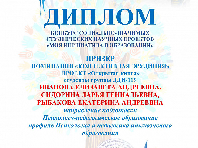 Иванова Елизавета Андреевна, Сидорина Дарья Геннадьевна, Рыбакова Екатерина Андреевна |