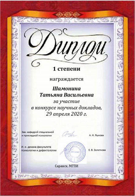 29 апреля 2020 года на факультете психологии и дефектологии Мордовского государственного педагогического института имени М. Е. Евсевьева состоялся конкурс научных докладов среди бакалавров.
