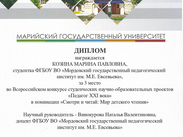 С 01 февраля по 22 мая 2020 года на базе Марийского государственного университета прошел Всероссийский конкурс студенческих научно-образовательных проектов «Педагог XXI века».