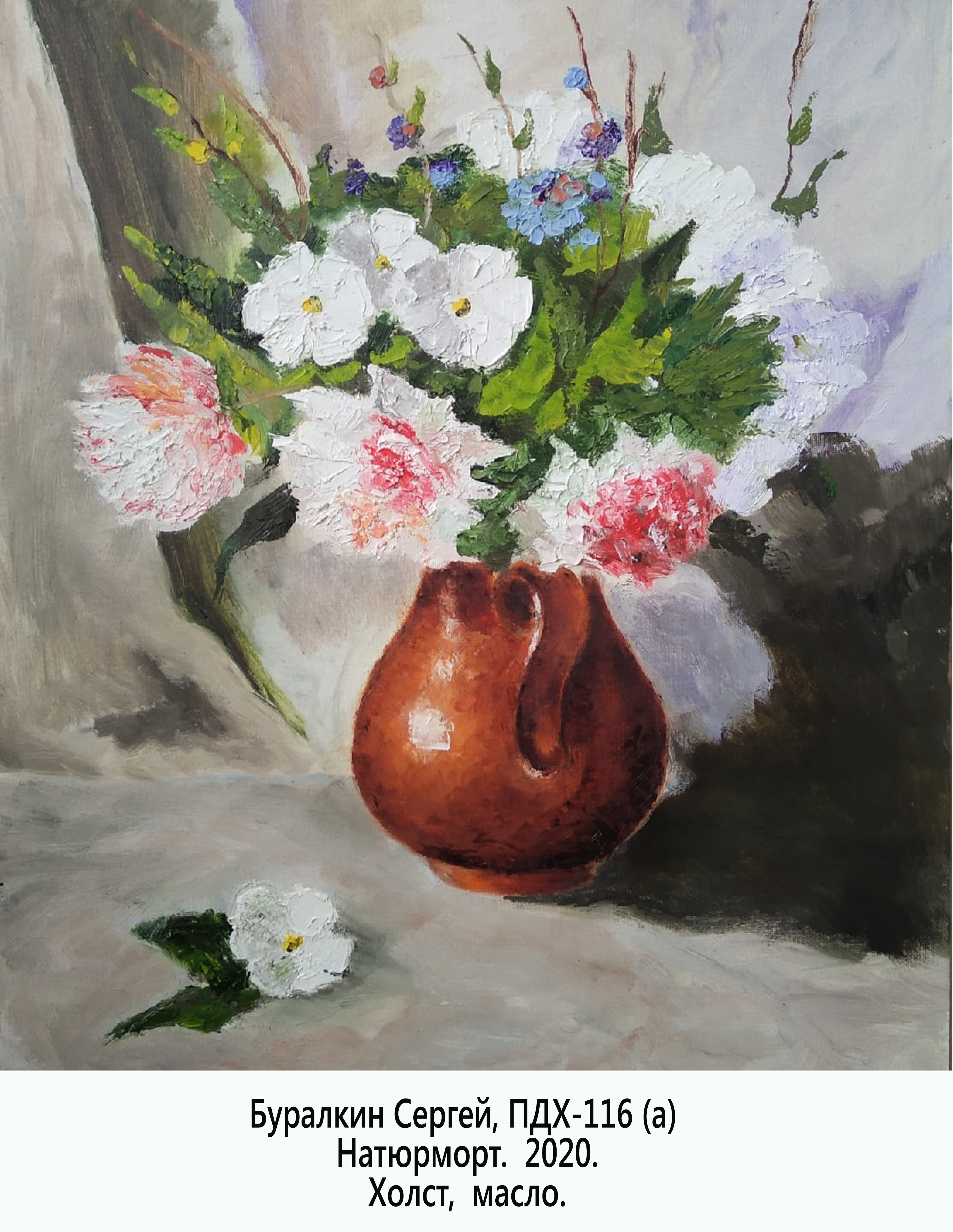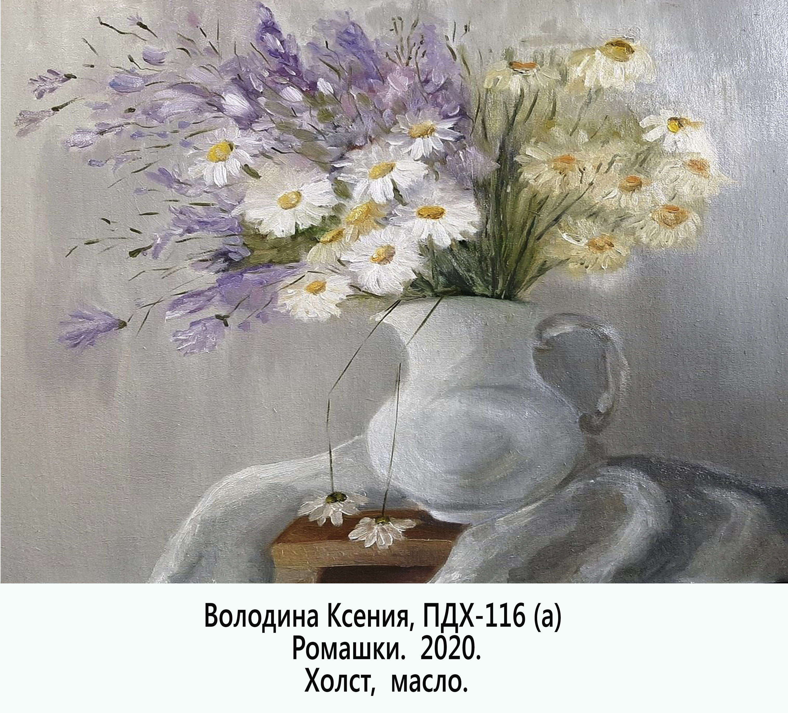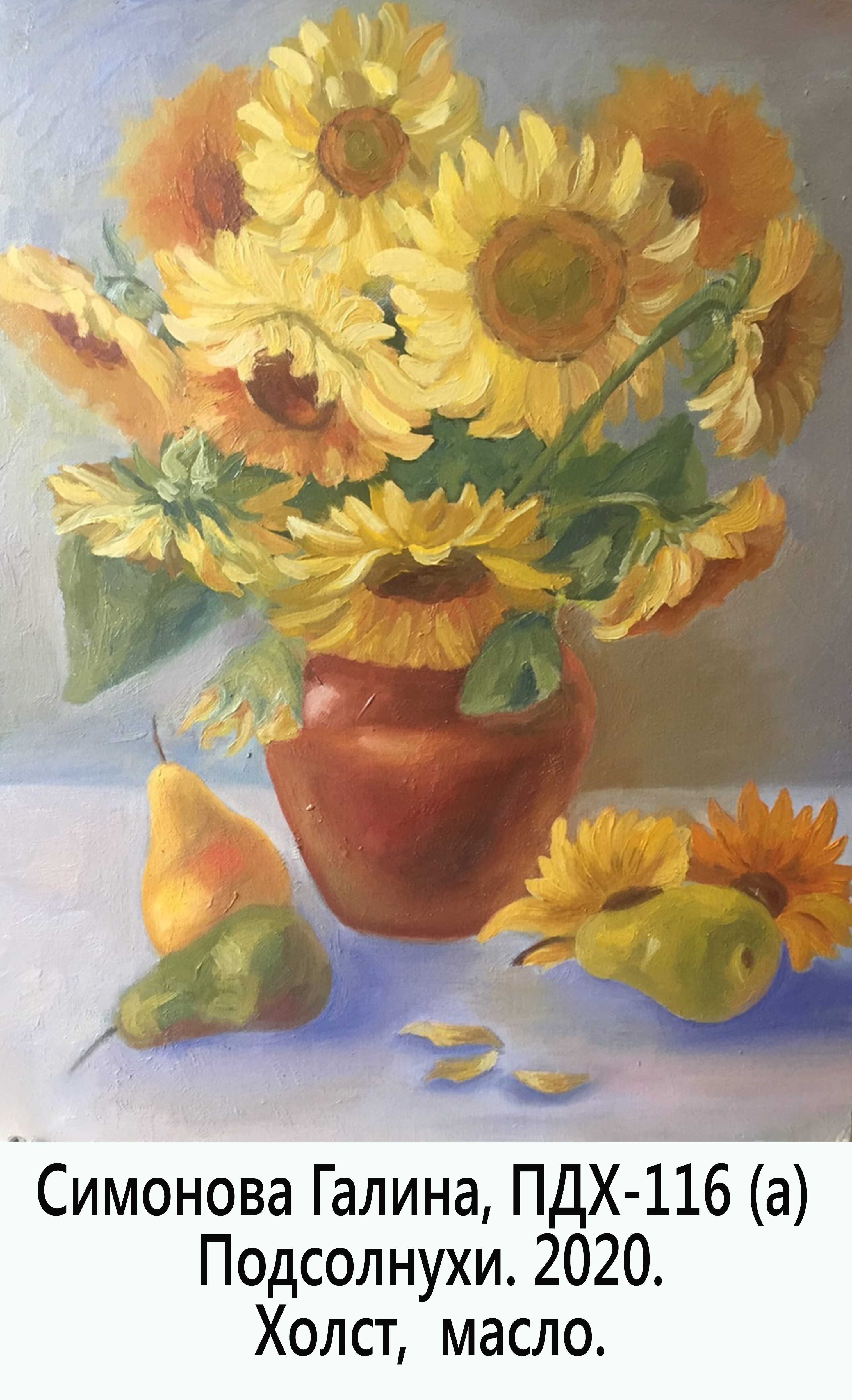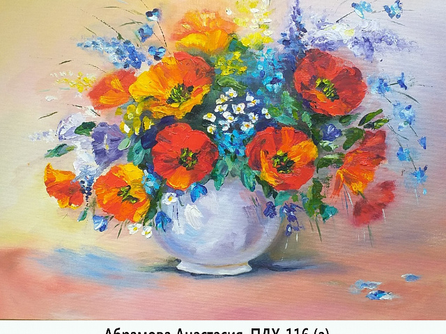 Экспозицию составили работы по дисциплинам: «Основы рисунка и графики», «Основы живописи» (группа ПДХ-119); «Основы рисунка и живописи» (группа ПДХ-118); «Живопись» (группа ПДХ-116) – педагог В. А. Варданян; «Рисунок» (группы ПДХ-117, ПДХ-116) – педагог В. Г. Ваничкин