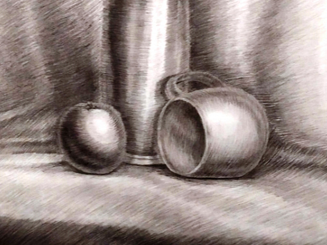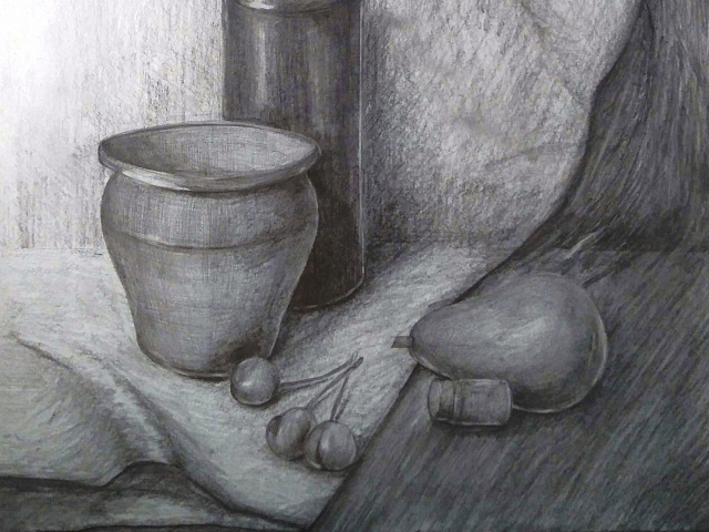 Представленные работы выполнены живописными и графическими материалами: акварель, гуашь, масло, карандаш, уголь, пастель. В рисунках прослеживается поступательный ход развития умений и навыков самостоятельного выполнения заданий в различных жанрах: натюрморт, пейзаж, портрет.