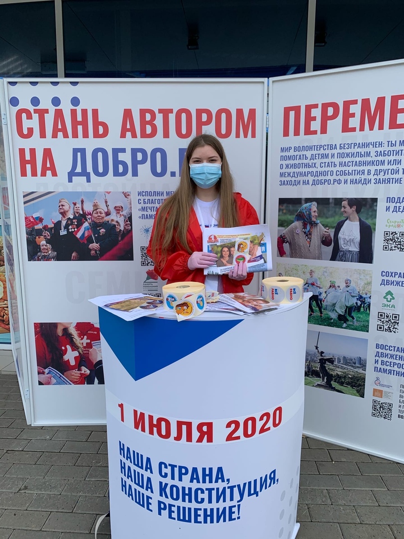 С 22 июня студенты-волонтеры на объектах городской инфраструктуры и на избирательных участках в формате живого общения проводят информационно-разъяснительную работу с населением о вносимых поправках в Конституцию РФ, осуществляют раздачу информационных материалов, средств индивидуальной защиты, помогают маломобильным гражданам проголосовать. За время своей работы добровольцы проинформировали уже более 6000 жителей города.