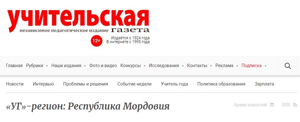 «Учительская газета» - регион: Республика Мордовия.