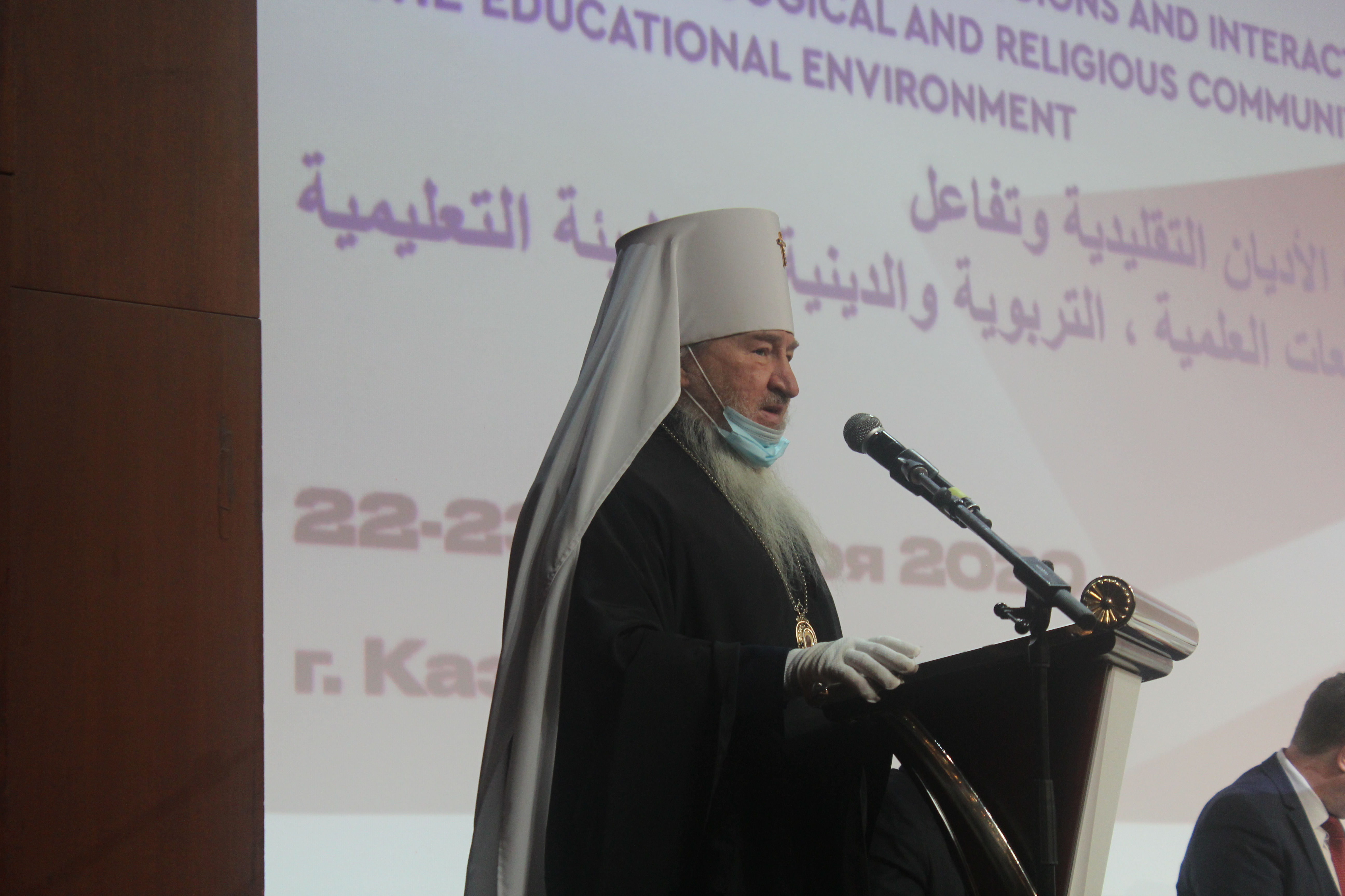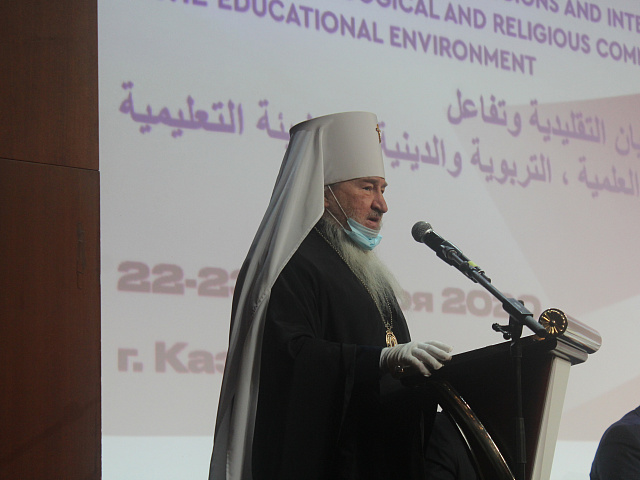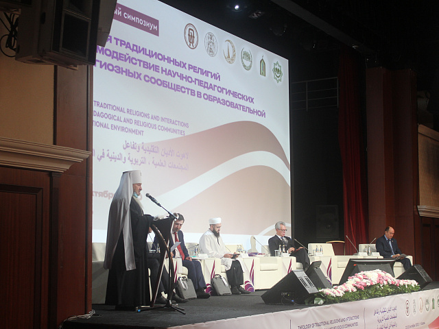 С приветственным словом выступили: Митрополит Волоколамский, Президент Научно – образовательной теологической ассоциации Иларион, начальник Департамента по взаимодействию с религиозным организациями Управления Президента Российской Федерации по внутренней политики Евгений Владимирович Еремин, муфтий Татарстана Камиль хазрат Самигуллин, Митрополит Казанский и Татарстанский Феофан, Главный раввин Республики Татарстан Ицхак Горелик,