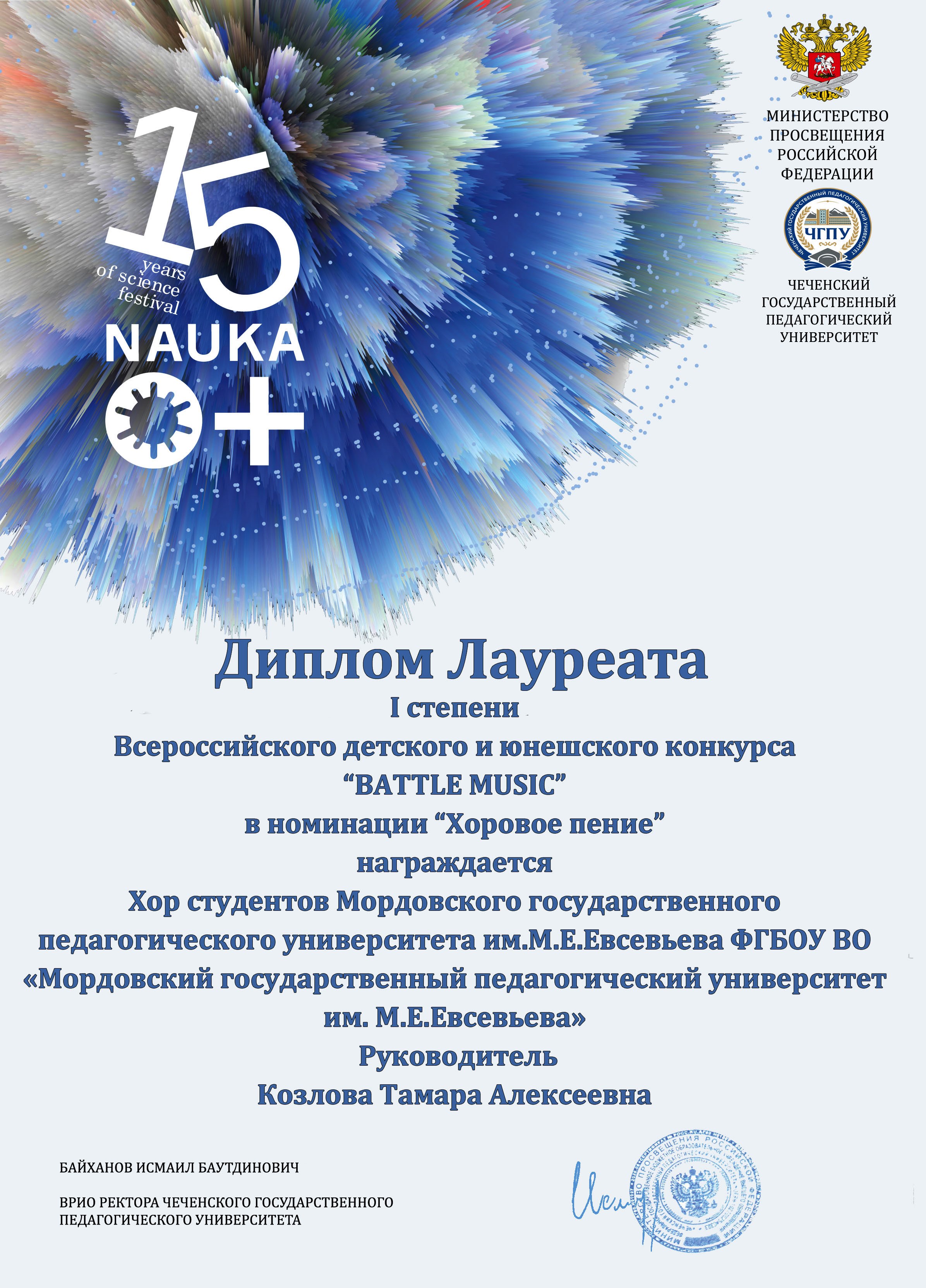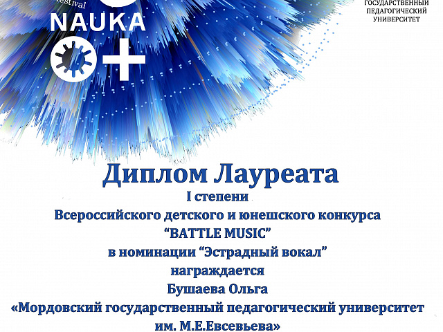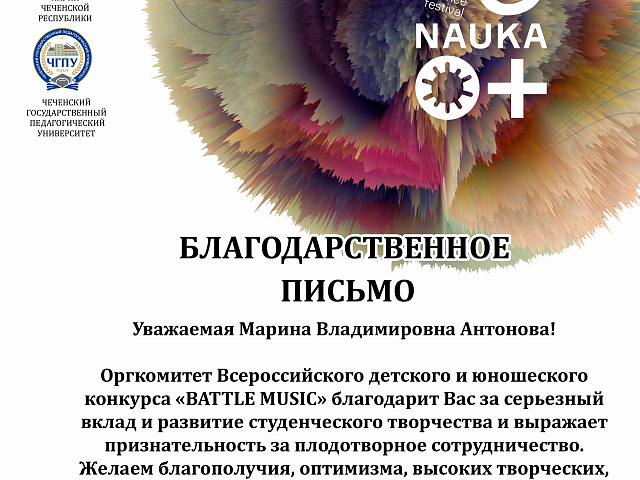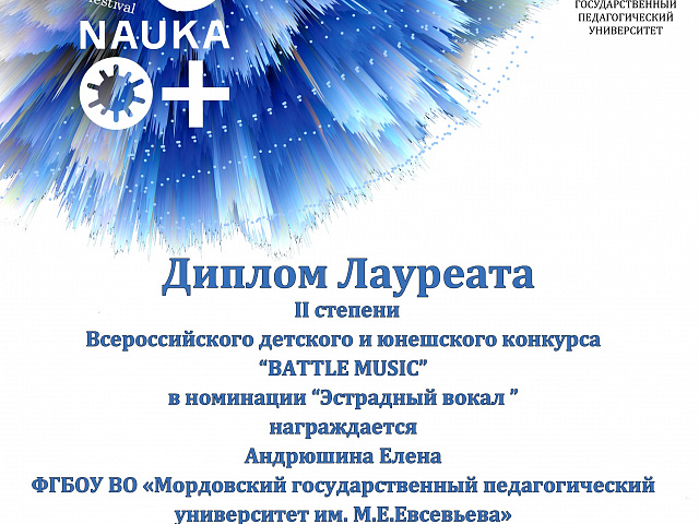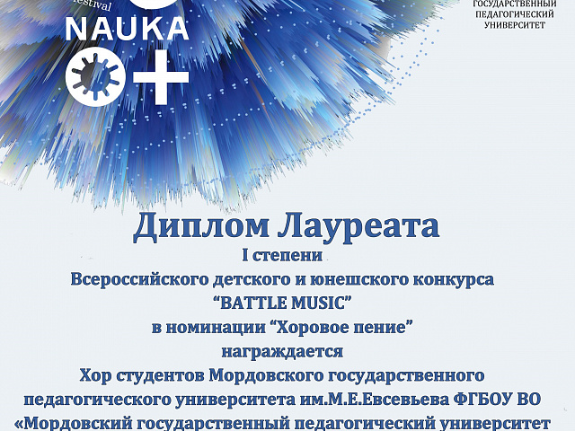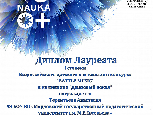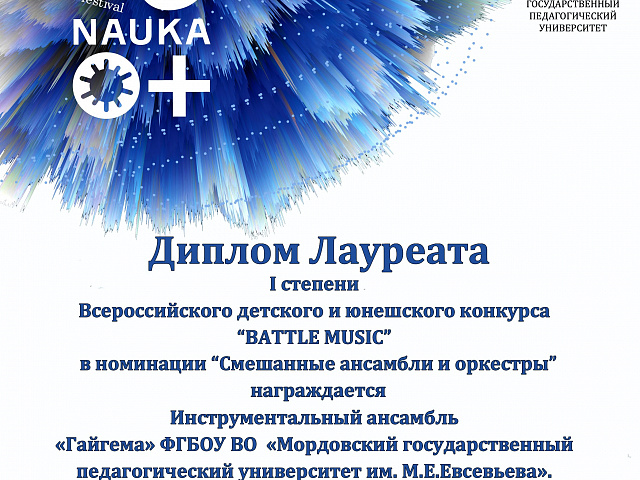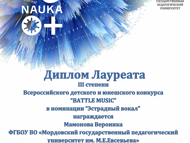 СТУДЕНТЫ ФАКУЛЬТЕТА ПЕДАГОГИЧЕСКОГО И ХУДОЖЕСТВЕННОГО ОБРАЗОВАНИЯ МГПУ ИМ. М. Е. ЕВСЕВЬЕВА СТАЛИ ЛАУРЕАТАМИ ВСЕРОССИЙСКОГО КОНКУРСА ДЕТСКОГО И ЮНОШЕСКОГО ТВОРЧЕСТВА «BATTLE MUSIC», КОТОРЫЙ ПРОШЕЛ НА БАЗЕ ФАКУЛЬТЕТА ИСКУССТВ В ЧЕЧЕНСКОМ ГОСУДАРСТВЕННОМ ПЕДАГОГИЧЕСКОМ УНИВЕРСИТЕТЕ.