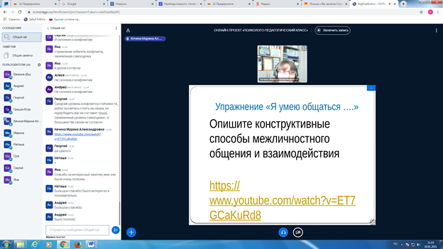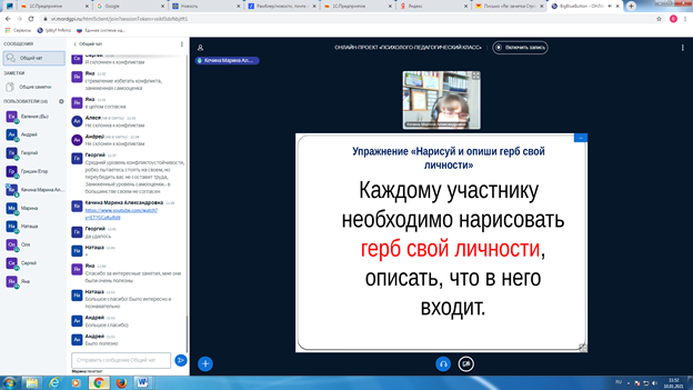 Актуальными форматами взаимодействия участников являются онлайн-лекции, практикумы, мастер-классы, тренинги, интеллектуальные квизы, эко-арт-терапия, психологические митапы, психологические активити, образовательные интенсивы, психологические акваклубы.