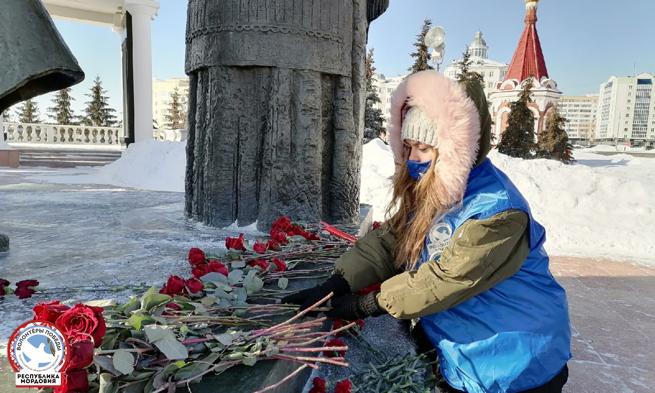 На площади Победы в городе Саранск состоялось торжественное возложение цветов к монументу воинам - уроженцам Мордовии, погибшим в годы Великой Отечественной войны. Вместе с «Волонтерами Победы» память героев почтили Совет ветеранов Мордовии, патриотическое объединение «Поиск», члены «Молодой Гвардии», волонтеры и актив партии «Единая России».