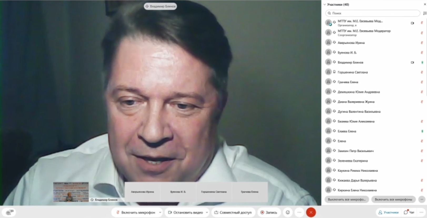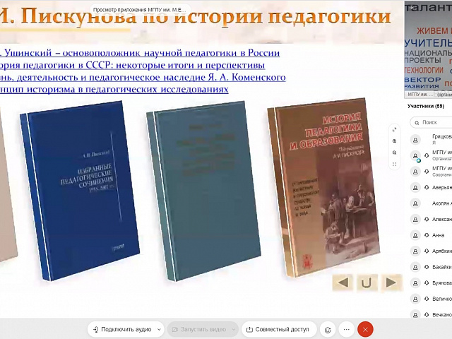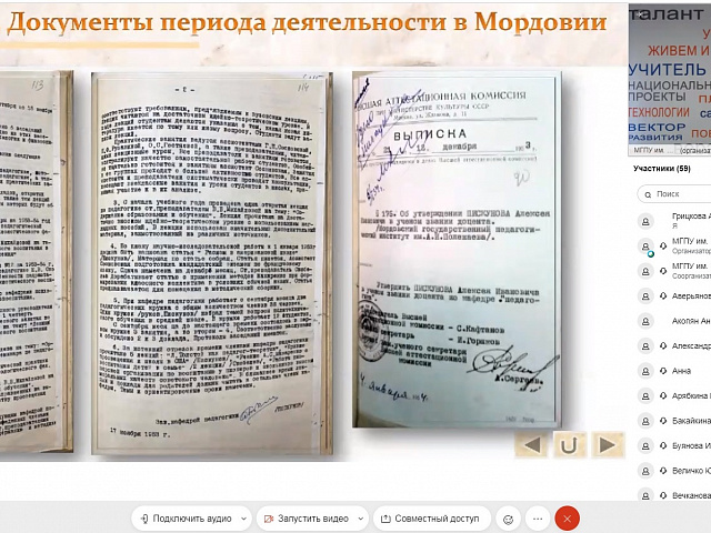 На связи находился еще один ученик Алексея Ивановича Пискунова – Рыжов Алексей Николаевич, доктор педагогических наук, доцент, профессор кафедры педагогики и психологии профессионального образования имени академика РАО В. А. Сластёнина Института педагогики и психологии ФГБОУ ВО «Московский государственный педагогический университет», который рассказал о малоизвестных фактах из жизни А. И. Пискунова.