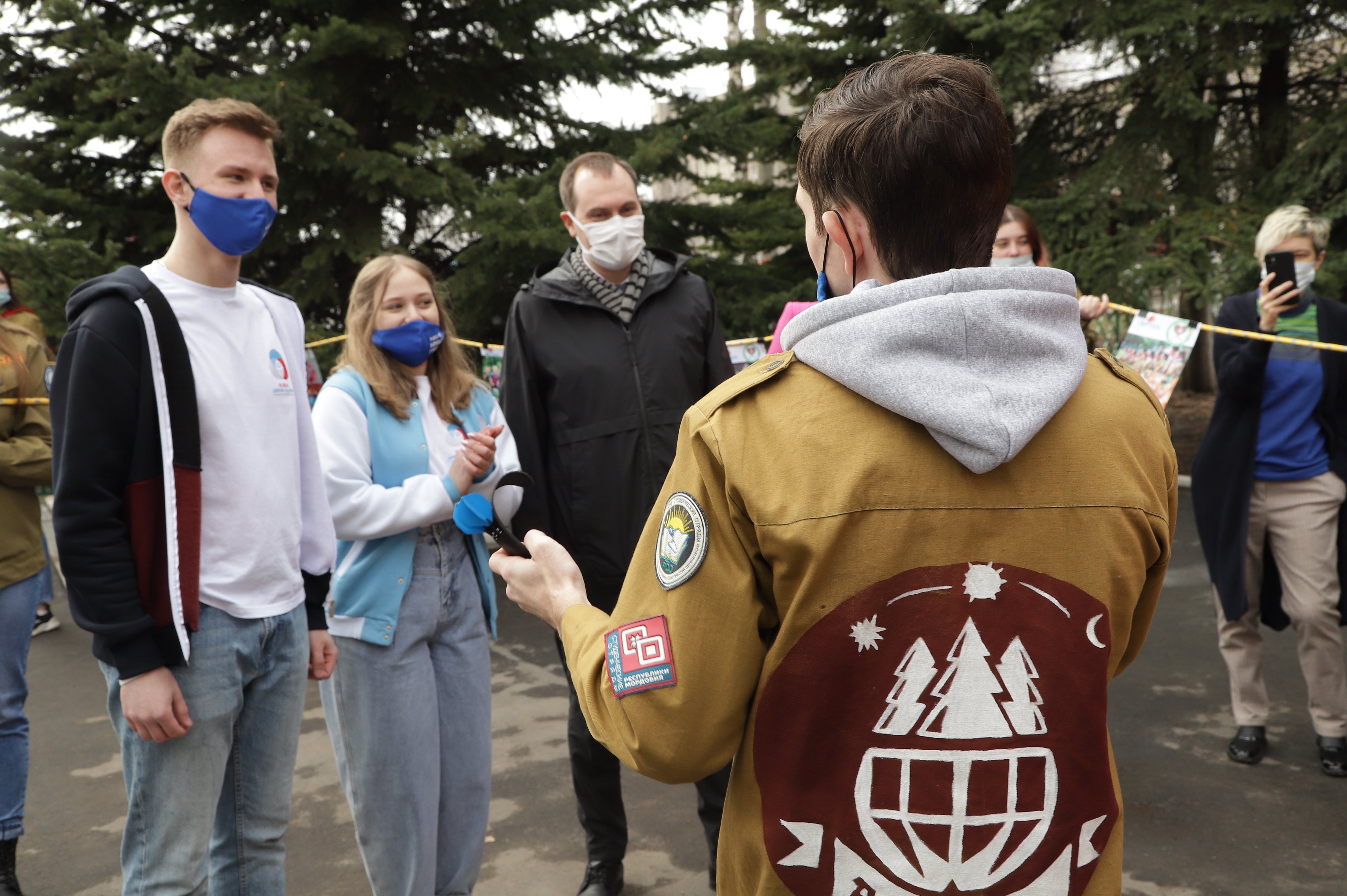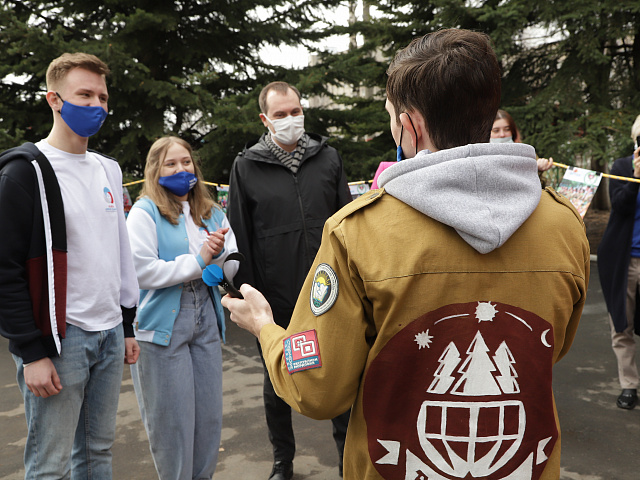 На площадке, перед главным корпусом вуза для Артема Алексеевича и двух школьников началось большое вожатское действие, напоминающее первый день жизни в летнем детском лагере.