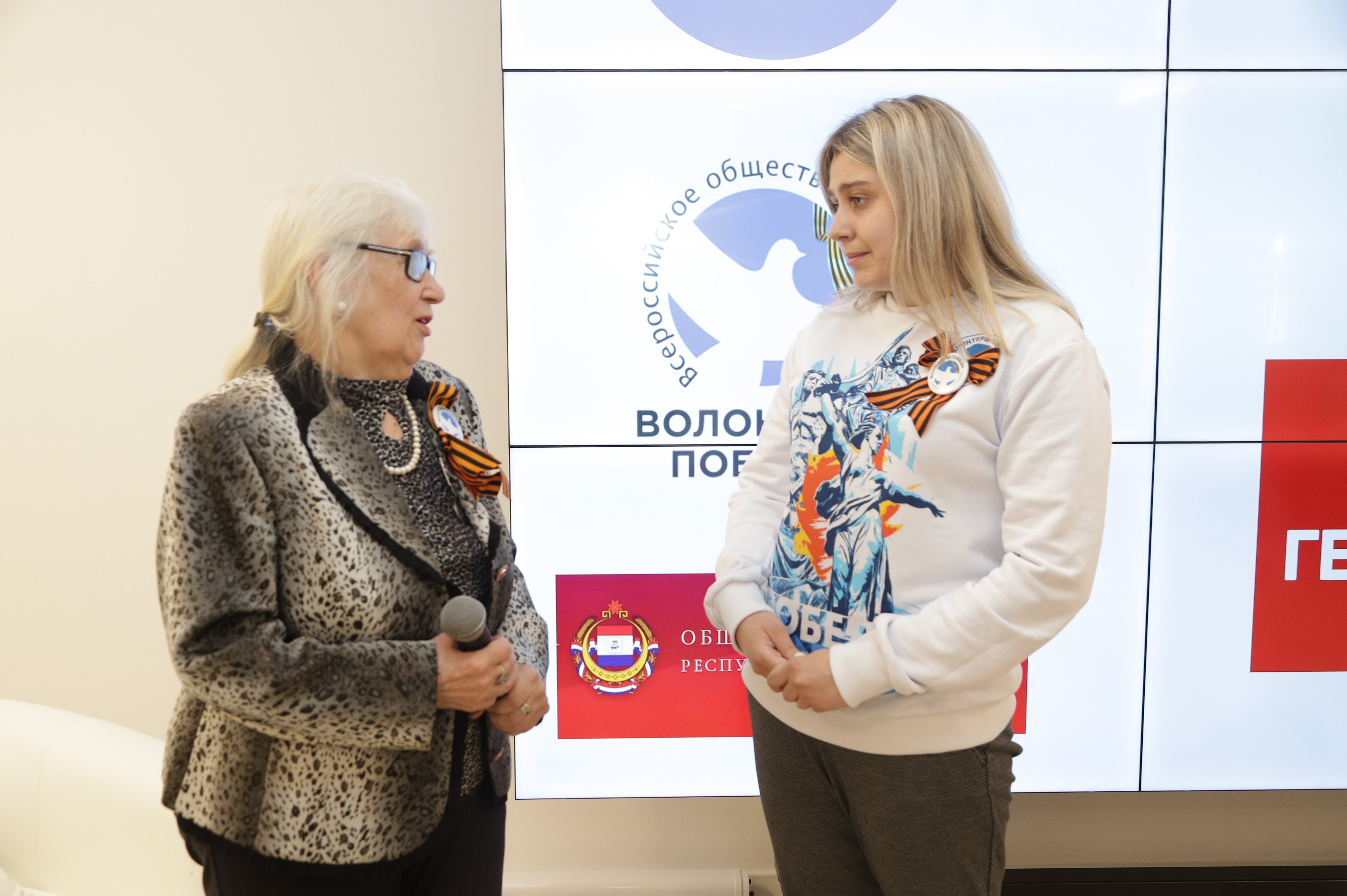 ✅В конце встречи руководитель регионального отделения организации «Волонтеры победы» Елена Вавилина торжественно приняла Светлану Ивановну в единую команду волонтеров, после чего все гости, среди которых также были бойцы отряда «Сурский рубеж» и «Волонтеры Победы» педагогического университета, посмотрели документальный фильм Человек легенда - Летчик Девятаев.