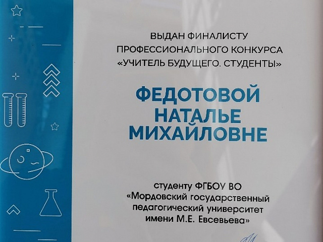 В финале конкурса МГПУ представили студенты вуза, молодые педагоги – Федотова Наталья Михайловна, магистрант 1 курса факультета педагогического и художественного образования, учитель начальных классов СОШ №35 г. Саранска, и Лебедева Татьяна Викторовна, магистрант 2 курса филологического факультета, учитель русского языка и литературы Многопрофильной лингвистической гимназии №33 г. Мытищи.