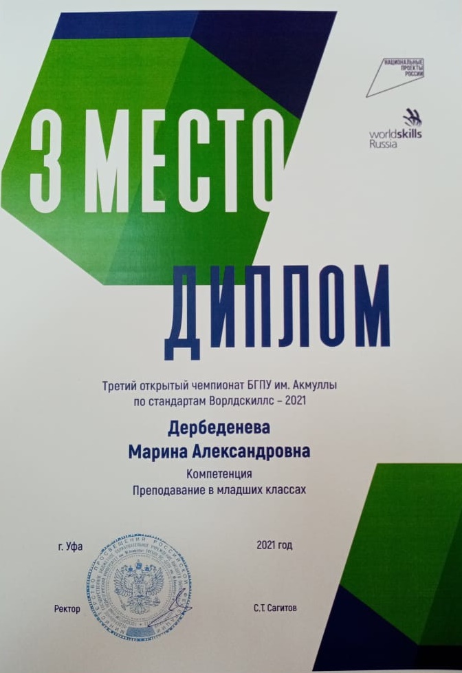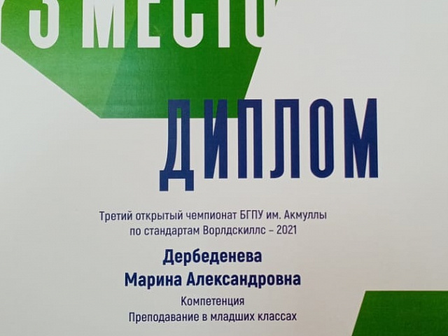 Дербеденева Марина Александровна, студентка 5 курса факультета педагогического и художественного образования - 3 место по компетенции «Преподавание в начальных классах»;