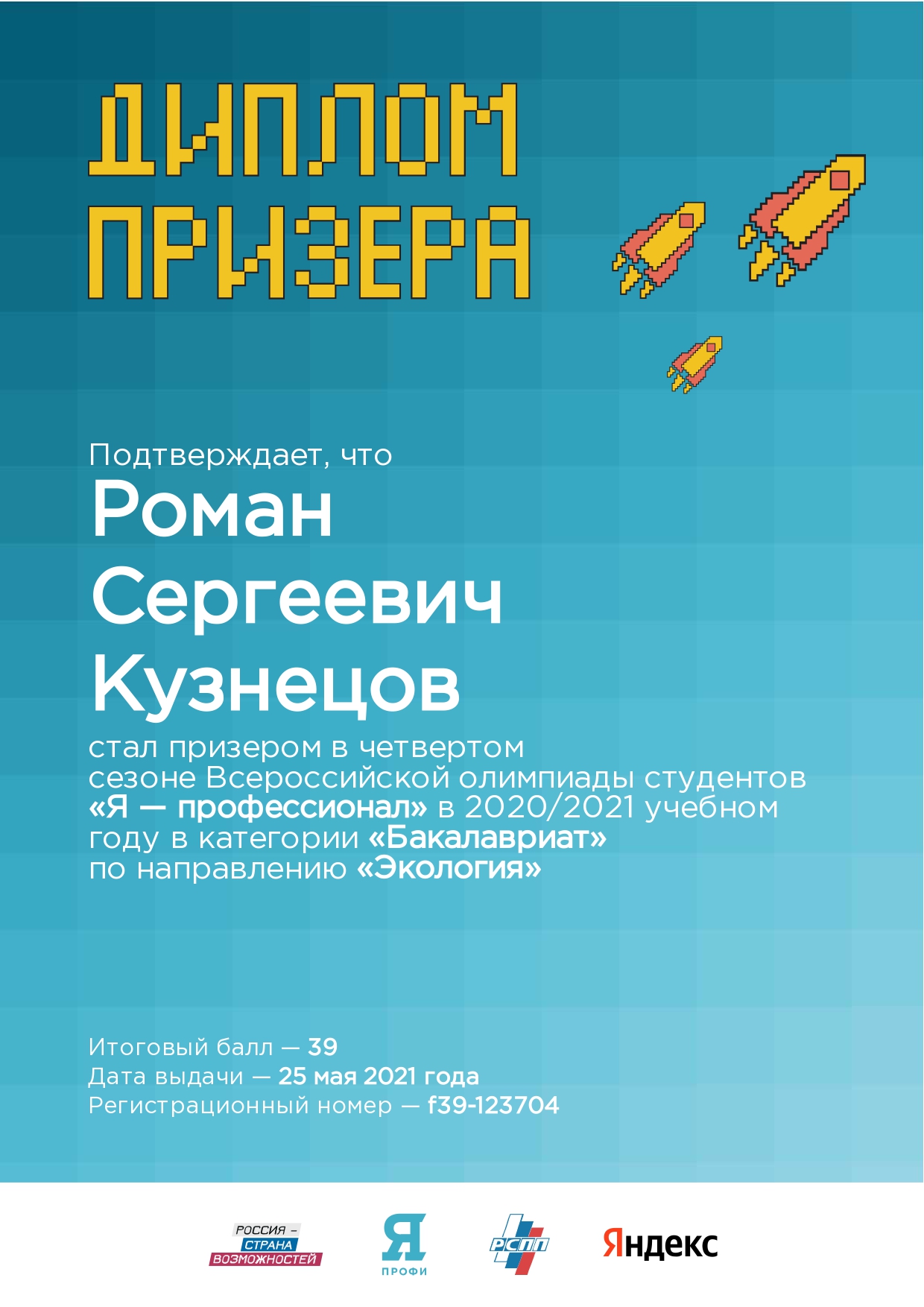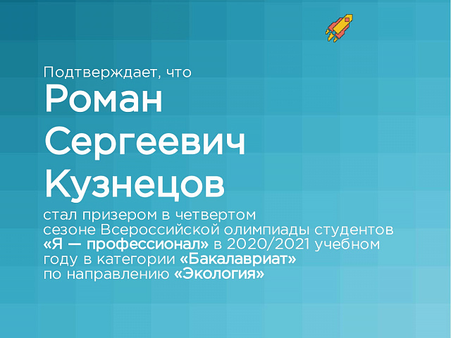 Призером в номинации «Экология» стал студент 4 курса естественно-технологического факультета Кузнецов Роман Сергеевич.