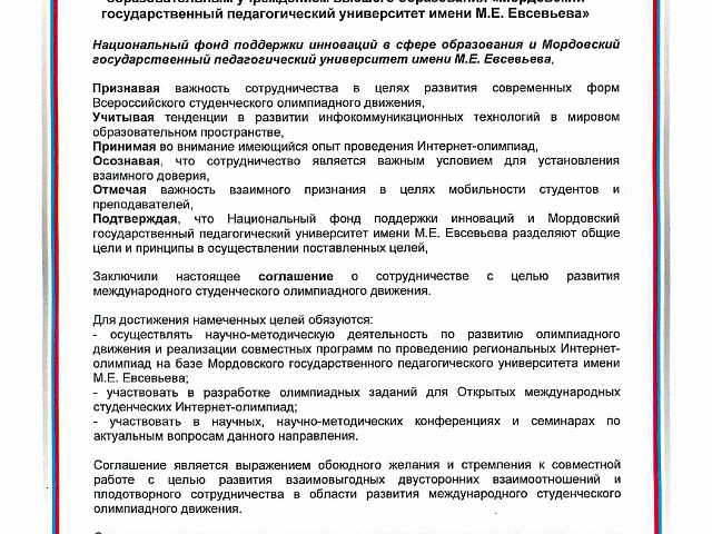 С целью развития международного студенческого олимпиадного движения продолжено сотрудничество с Национальным фондом поддержки инноваций в сфере образования, который ежегодно проводит цикл открытых международных студенческих интернет-олимпиад по различным дисциплинам.