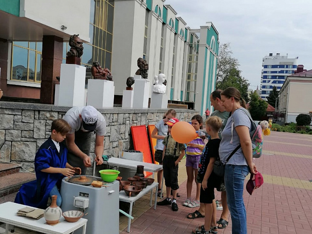 Особое восхищение маленьких зрителей вызвал мастер-класс «Гончарное искусство» старшего преподавателя кафедры художественного и музыкального образования Александра Русяева. От желающих скрутить изделие на гончарном круге не было отбоя.