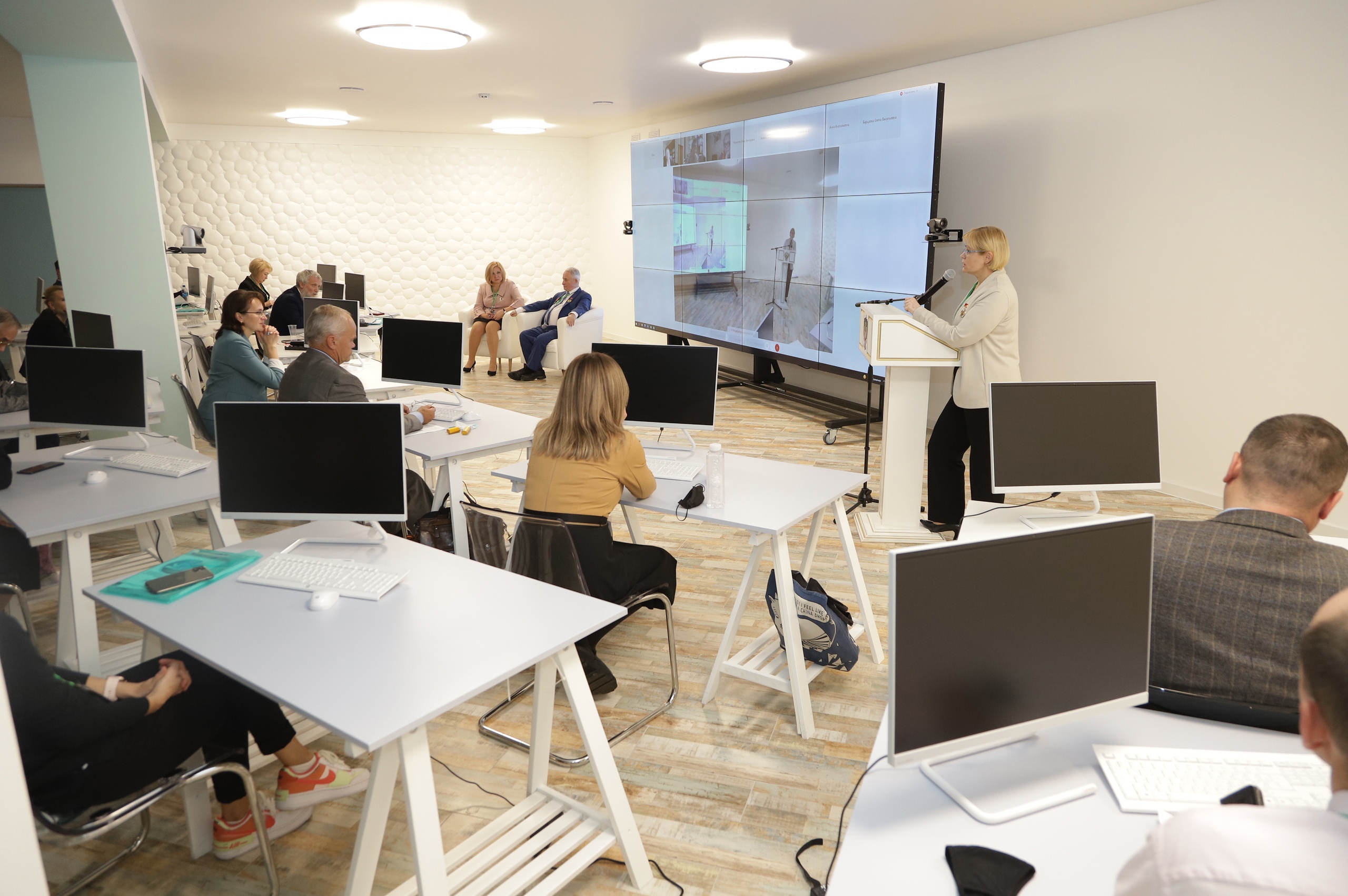 Поприветствовала гостей О. В. Шуляпова, заместитель Директора Департамента по социальной политике Администрации городского округа Саранск – Начальник управления образования. Также к работе заседания в режиме видеоконференции подключились коллеги из Института современных знаний им. А.М. Широкова, г. Минск, Республика Беларусь. К участникам с пожеланиями успешной работы обратилась И. И. Петрашевич, кандидат педагогических наук, доцент, заведующая кафедрой социально-гуманитарных дисциплин и менеджмента.