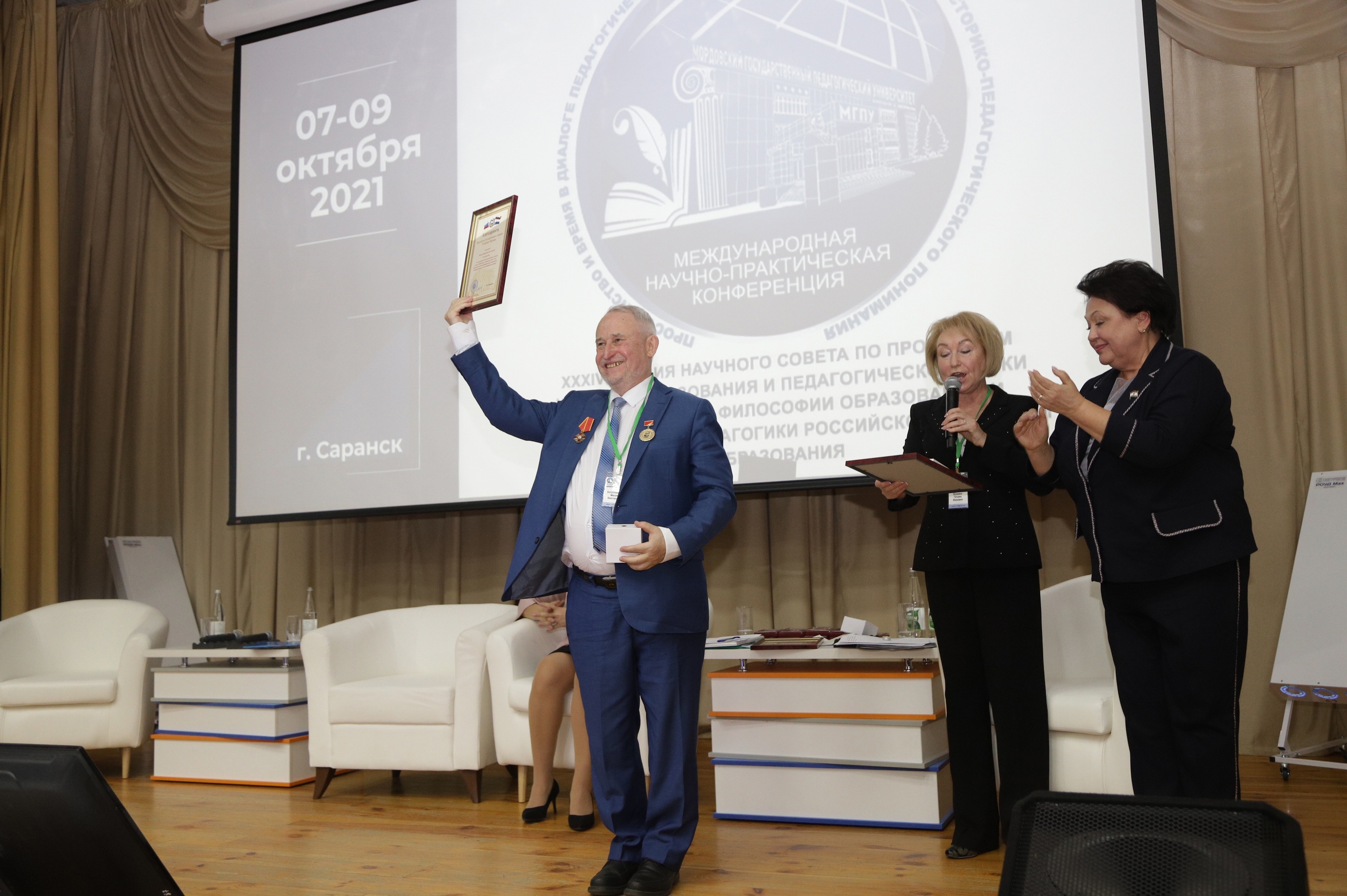 Со словами приветствия к гостям конференции обратилась Н. В. Долматова, заместитель Председателя Государственного Собрания Республики Мордовия, Председатель комитета по социальной политике. Ею вручены благодарности Государственного Собрания Республики Мордовия члену-корреспонденту Российской академии образования М. В. Богуславскому, академику Российской академии И. Д. Лельчицкому, профессору Санкт-Петербургской академии постдипломного педагогического образования А. Н. Шевелеву.