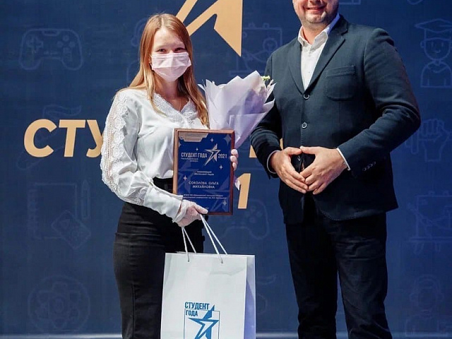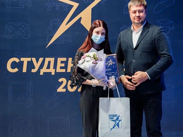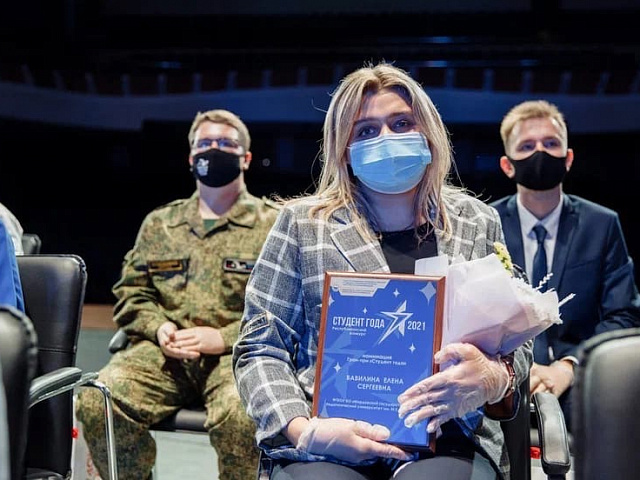 Победителем в номинации Гран-при «Студент года» среди студентов организаций высшего образования признана – Вавилина Елена, студентка факультета истории и права.