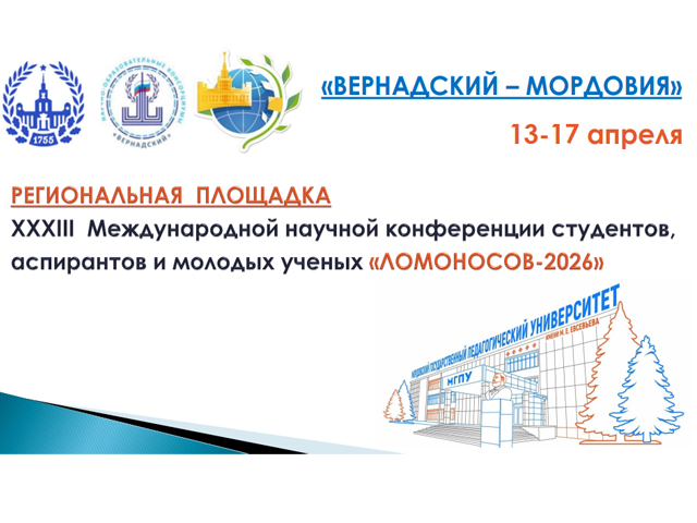 Уважаемые студенты, молодые ученые, коллеги! Вам предоставляется уникальная возможность участия в XXXIII Международной научной конференции студентов, аспирантов и молодых ученых «Ломоносов», традиционно сопровождающей ежегодный Международный молодежный научный форум «Ломоносов»! В рамках научно-образовательных консорциумов «Вернадский», объединяющих МГУ имени М. В. Ломоносова, несколько региональных вузов, научно-исследовате...