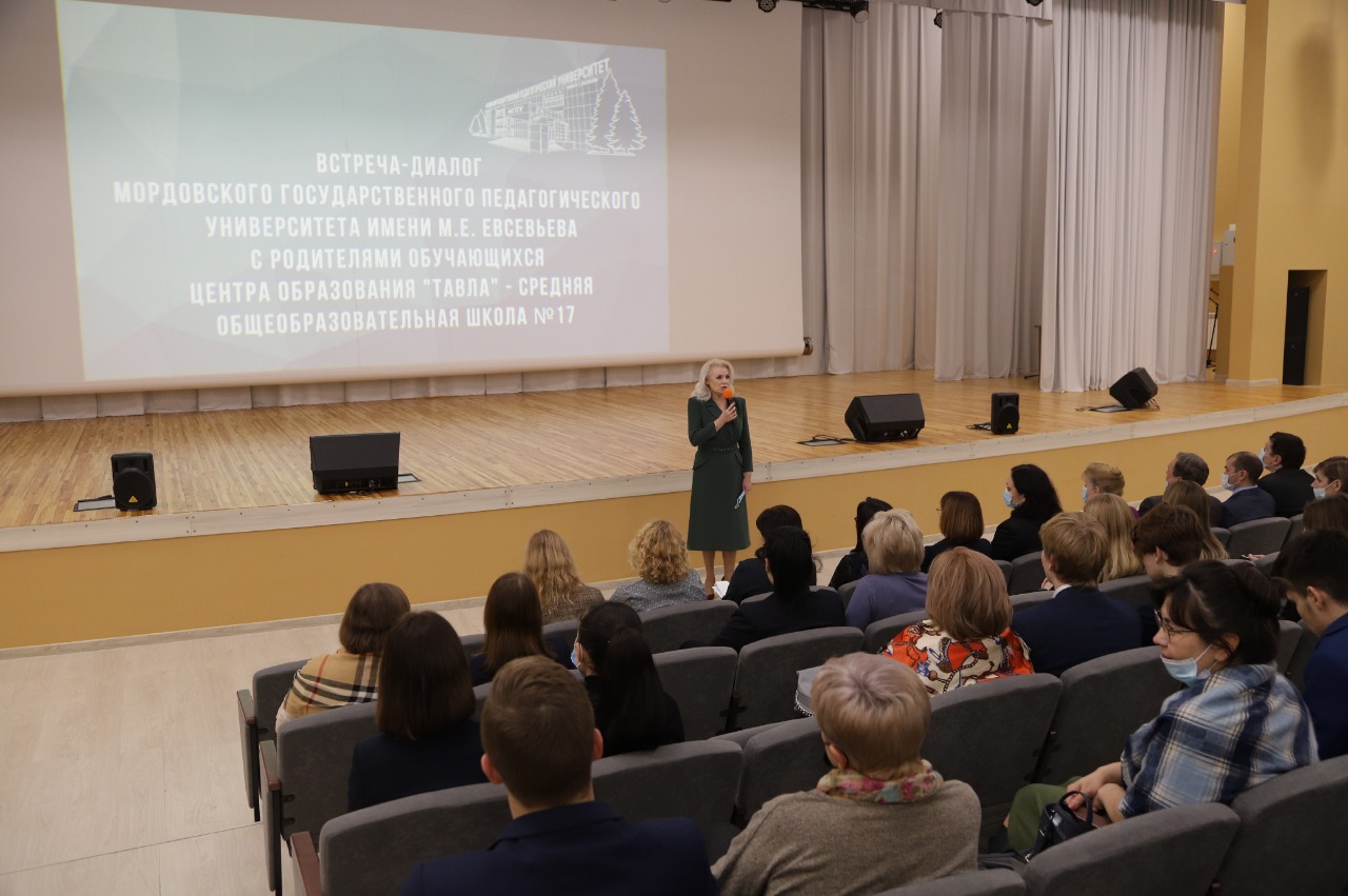 30 НОЯБРЯ 2021 ГОДА В ЦЕНТРЕ ОБРАЗОВАНИЯ «ТАВЛА» ГОРОДА САРАНСК СОСТОЯЛАСЬ ПРОФОРИЕНТАЦИОННАЯ ВСТРЕЧА – ДИАЛОГ РЕКТОРАТА МОРДОВСКОГО ГОСУДАРСТВЕННОГО ПЕДАГОГИЧЕСКОГО УНИВЕРСИТЕТА ИМЕНИ М. Е. ЕВСЕВЬЕВА С ПЕДАГОГИЧЕСКИМ КОЛЛЕКТИВОМ, РОДИТЕЛЯМИ И ВЫПУСКНИКАМИ ШКОЛЫ.