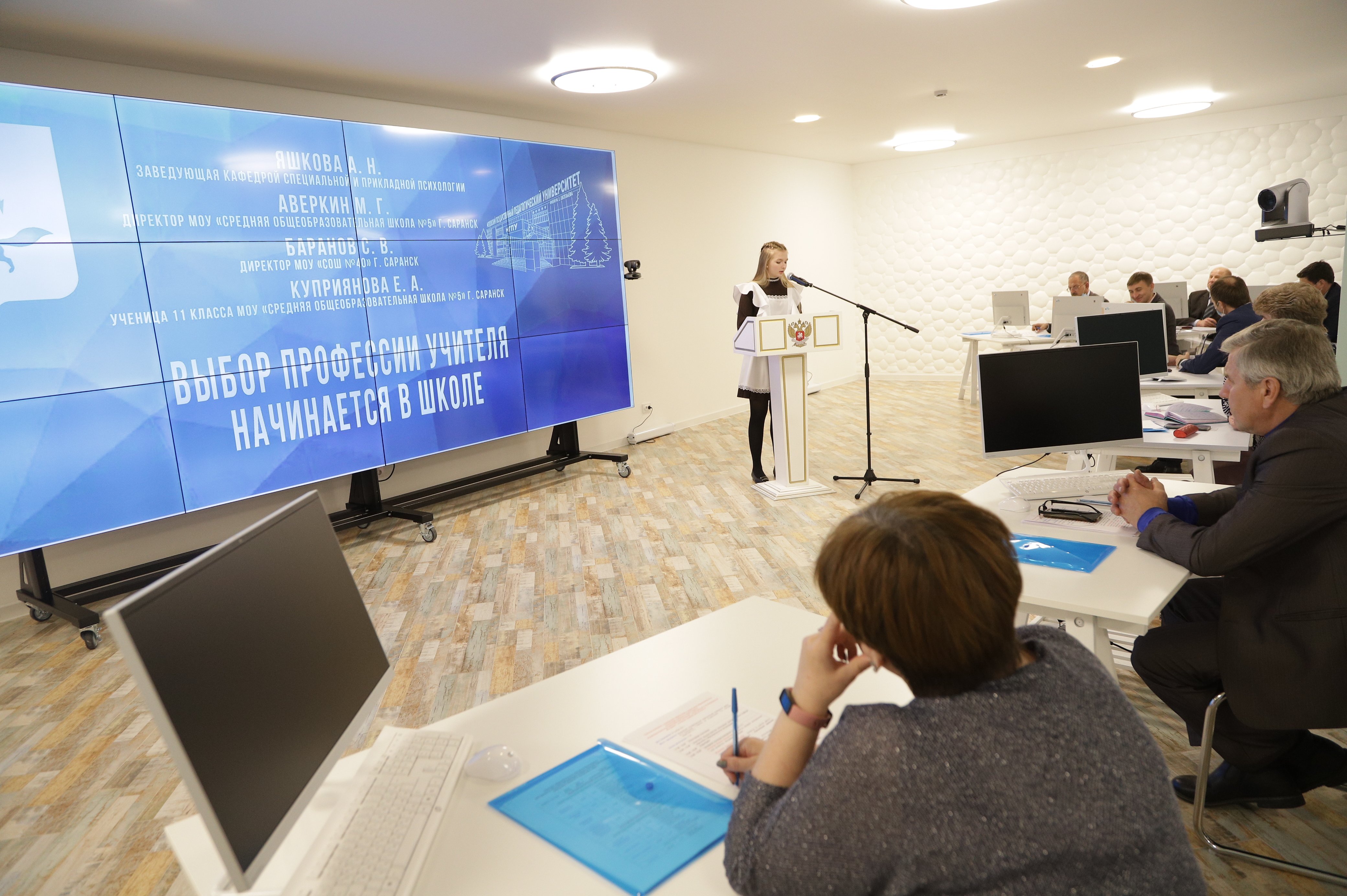 На одном из семинаров перед участниками мероприятия выступила ученица психолого-педагогического класса МОУ «Средняя общеобразовательная школа № 5» – Куприянова Екатерина. Школьница поделилась своим решением связать свою профессиональную траекторию с работой учителя и планами поступления в МГПУ им. М. Е. Евсевьева.