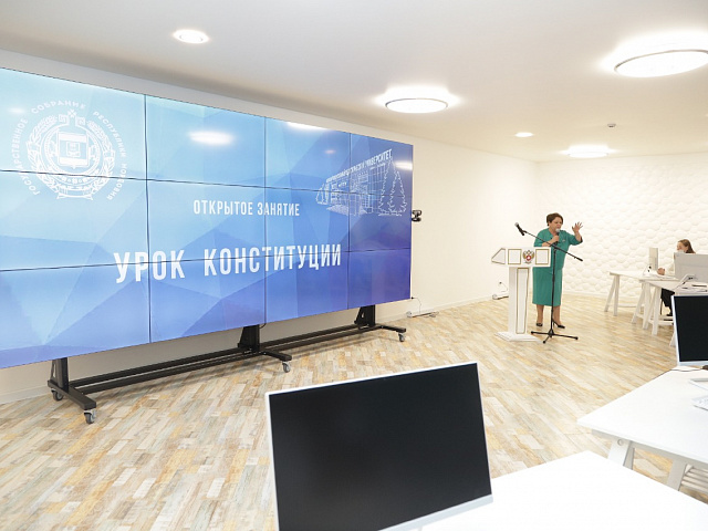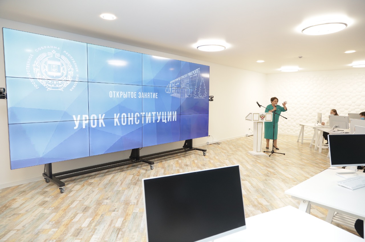13 декабря в лектории университета состоялось открытое занятие «Урок конституции», приуроченное к празднованию Дня Конституции Российской Федерации. Его провела заместитель Председателя Государственного Собрания республики Мордовия, Председатель комитета по социальной политике Наталья Владимировна Долматова.