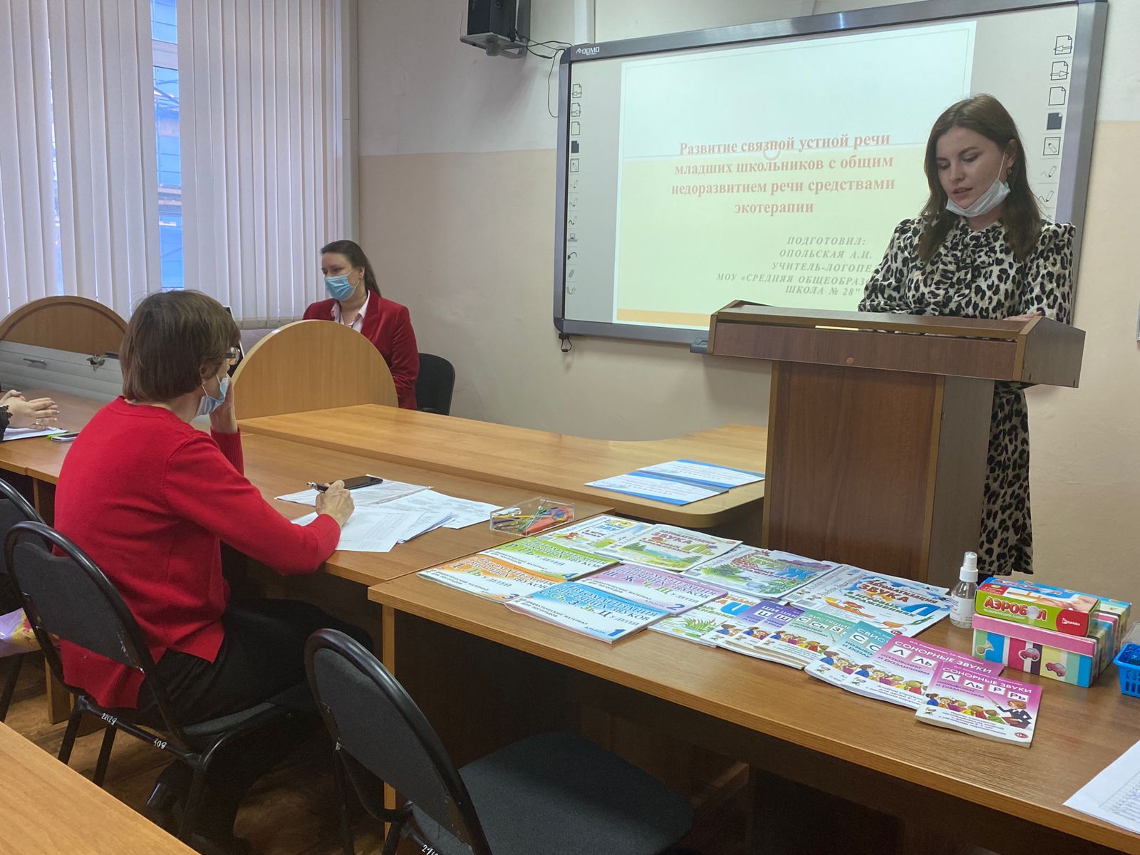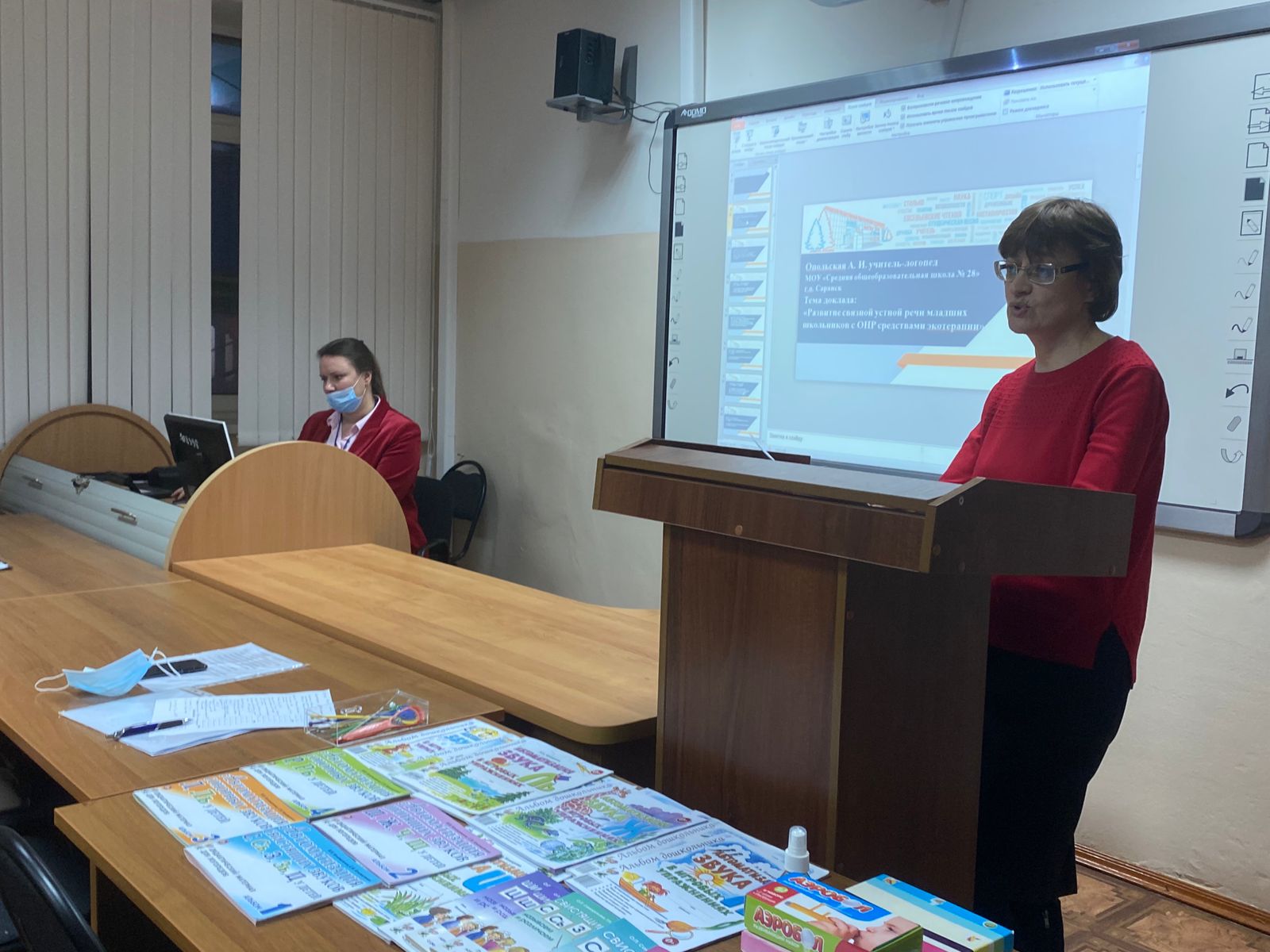 Учителя-логопеды продемонстрировали опыт внедрения инновационных разработок в практику логопедической службы: формирование фонетико-фонематических навыков у младших школьников с нарушениями речи средствами электронного альбома-пособия «Произношение. Мир звуков»; информационно-компьютерные технологии в работе школьного учителя-логопеда; особенности использования интерактивных образовательных ресурсов в работе логопеда. Особый интерес вызвали мастер-классы: «Хороший логопед немного актер» по основам ораторского мастерства; работа с Лэпбуком на логопедических занятиях; применение мульттерапии на занятиях с детьми с ОВЗ.